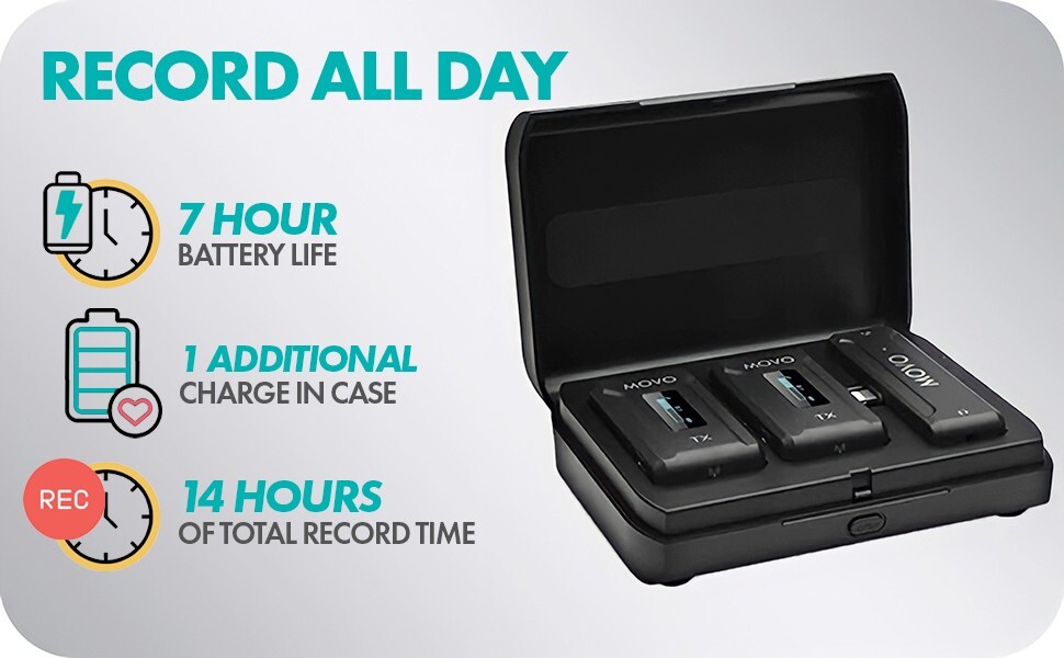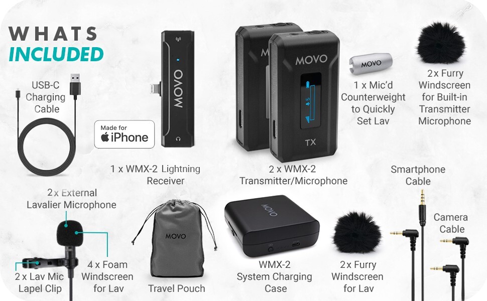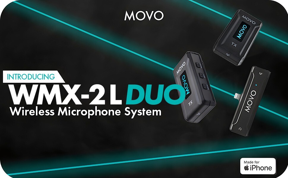 Movo WMX-2-L-DUO Wireless Microphone for iPhone with Charging Case, Lightnin----
