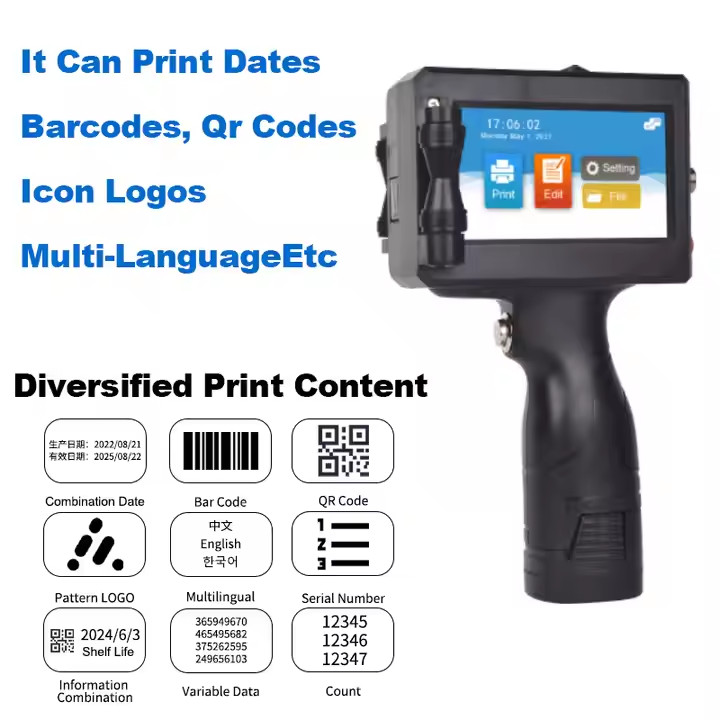 Handheld Inkjet Printer for Labels Dates Barcodes - Print on Any Material Easily