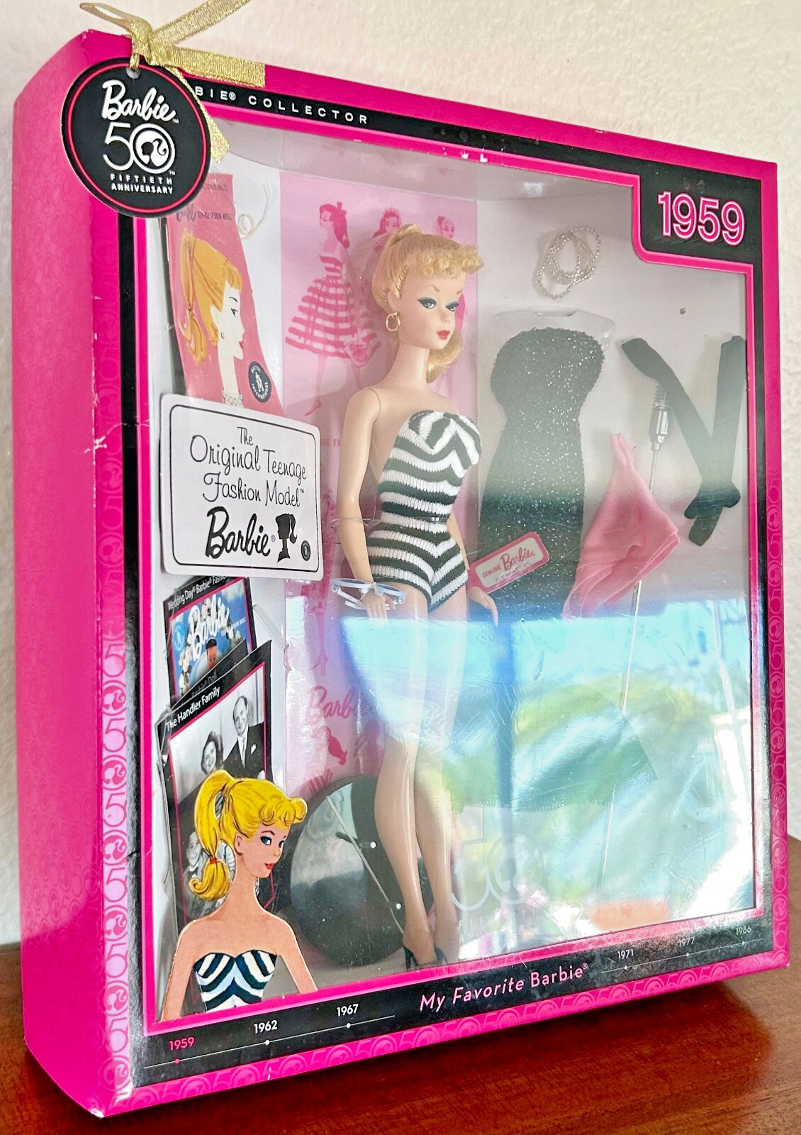 как выглядит 50th Anniversary Repro 1959 Barbie Doll Blonde Ponytail New in Box 2008 Mattel фото