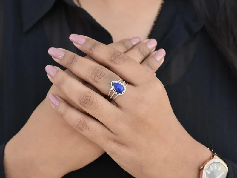 как выглядит Lapis Lazuli Ring 925 Sterling Silver Band Statement Handmade Ring All Size фото