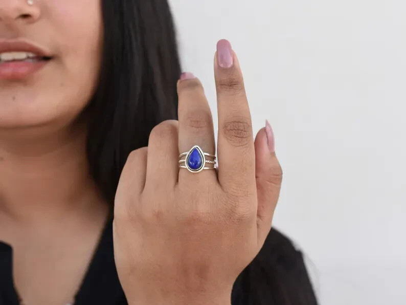 Lapis Lazuli Ring 925 Sterling Silver Band Statement Handmade Ring All Size