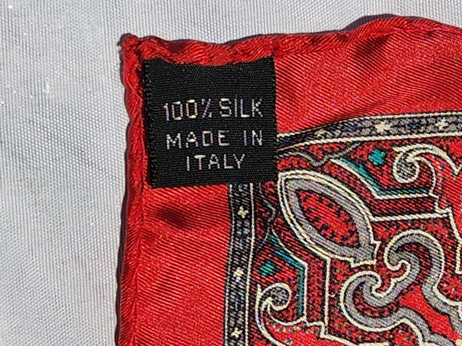 как выглядит Red Paisley Antique ITALIAN Silk 1950s Pocket Square 100 Silk фото
