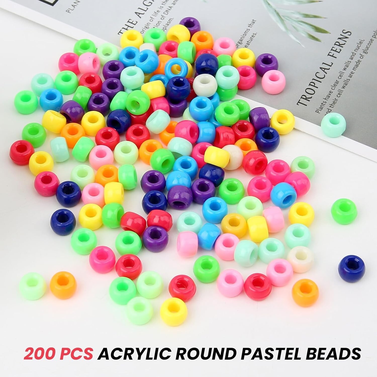 как выглядит 200Pcs Acrylic Round Beads with Large Hole, 9 x 6mm Assorted Color Spacer Beads фото
