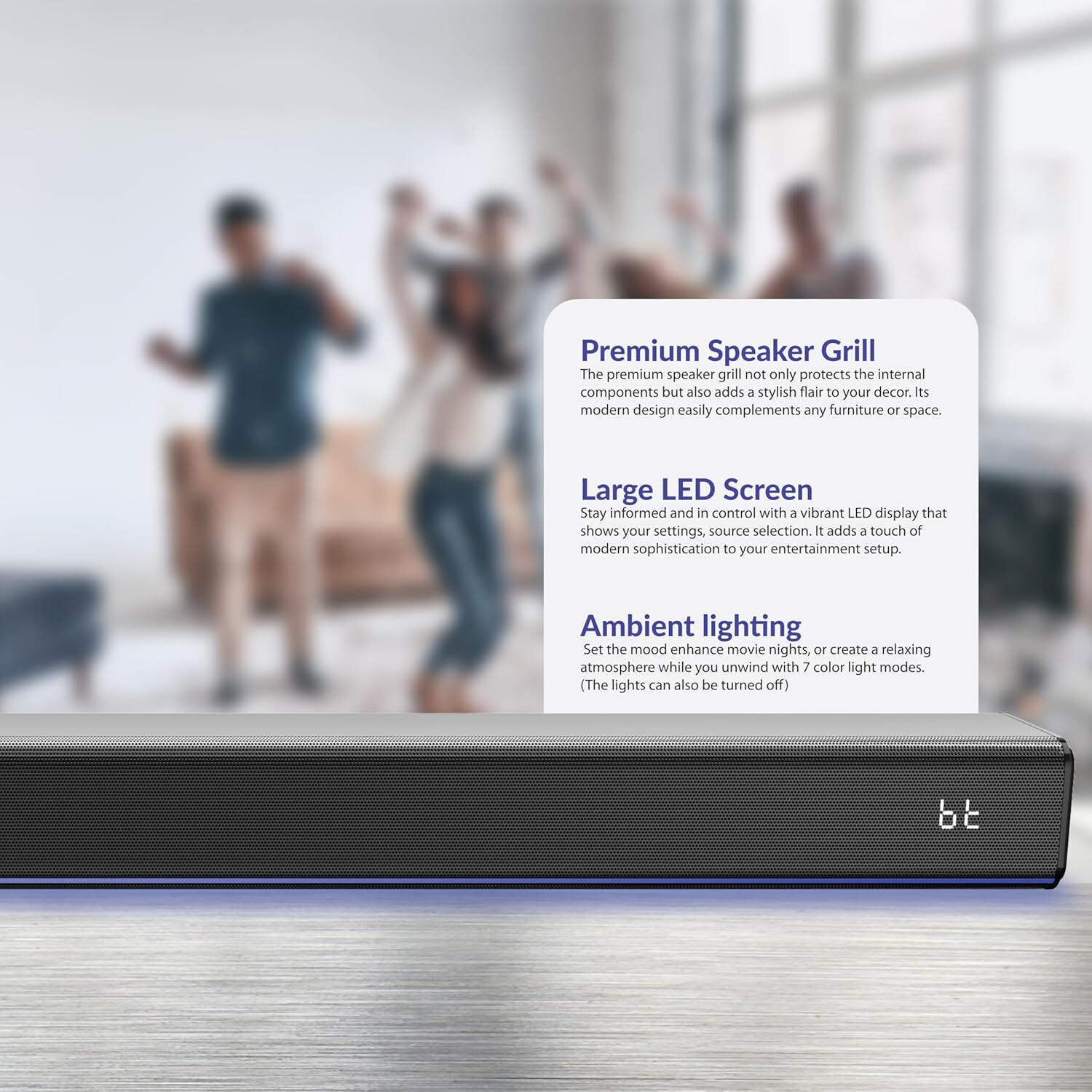Особенности: 7-Color Ambient LED Lighting + FM Radio, Bluetooth, Multiple Inputs for Versatile Connectivity