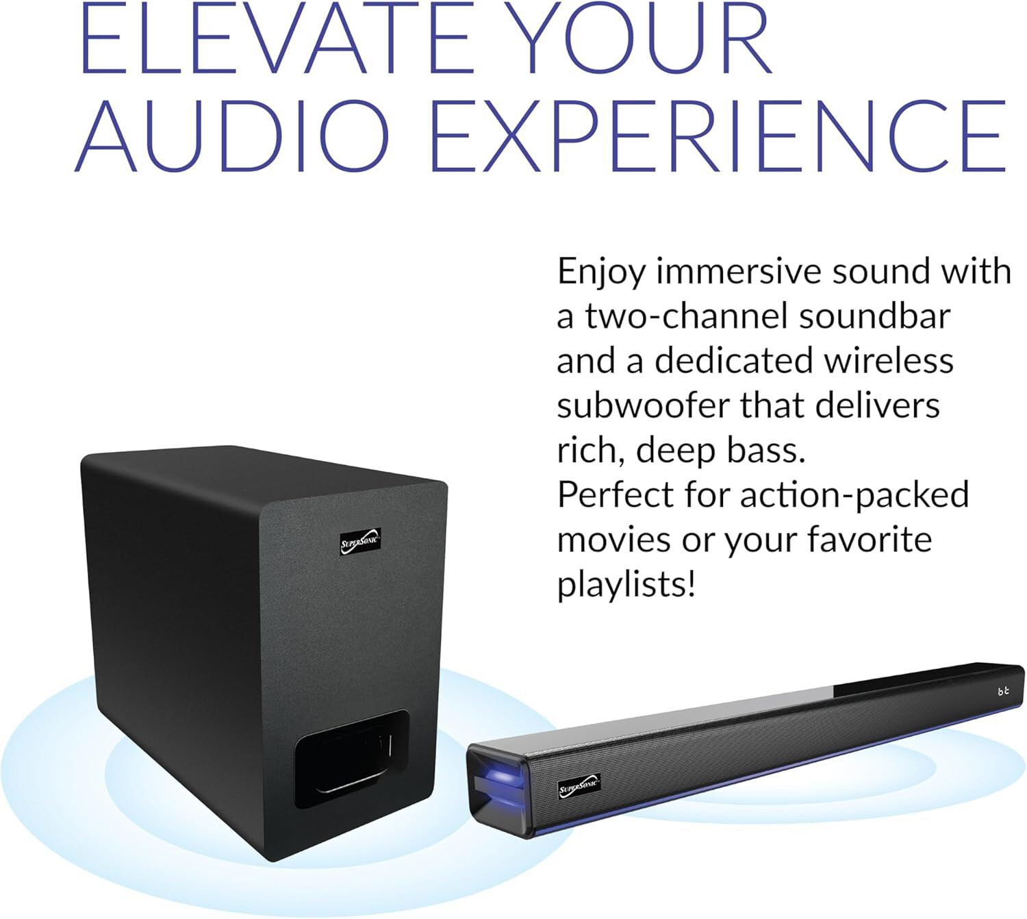 Supersonic SC-1425WSW 2.1 Bluetooth Soundbar w/ Wireless Subwoofer 80W Audio