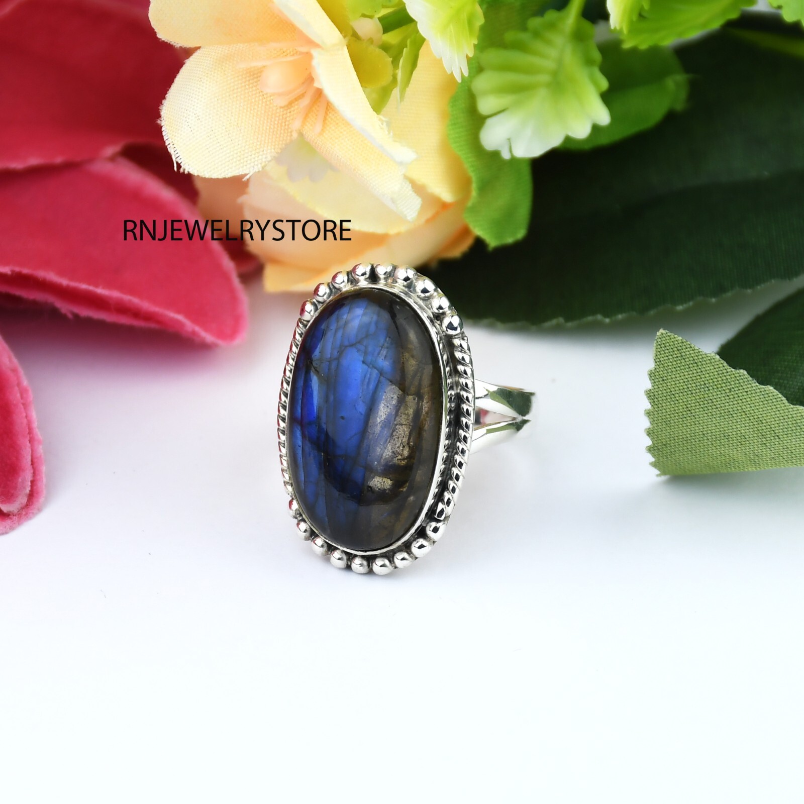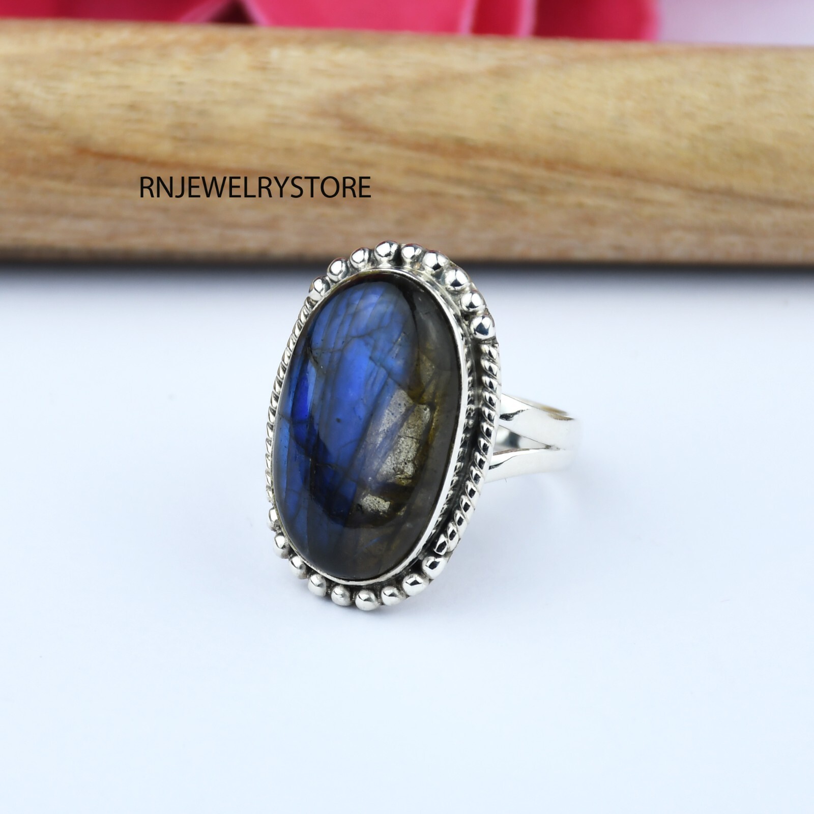 как выглядит Natural Labradorite 925 Sterling Silver Oval Shape Bezel Set Labradorite Ring фото