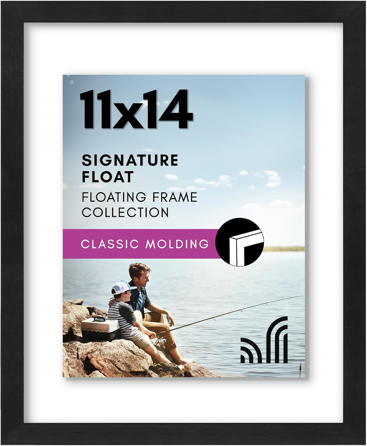 Versatile 11x14 Floating Picture Frame - Polished Glass Design for Clear Viewing