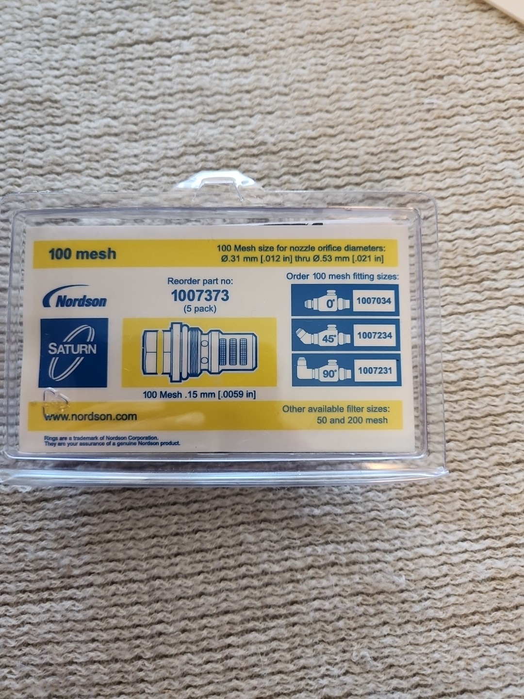 Nordson, 1007231, In-Line 90 Degree Filter Assembly, 100 Mesh