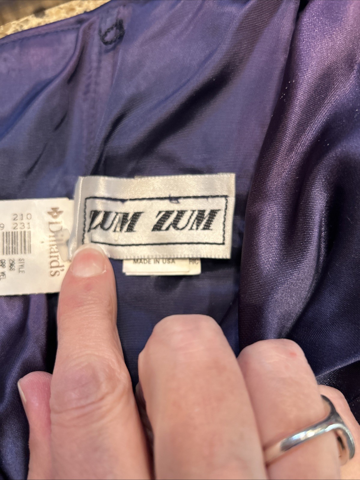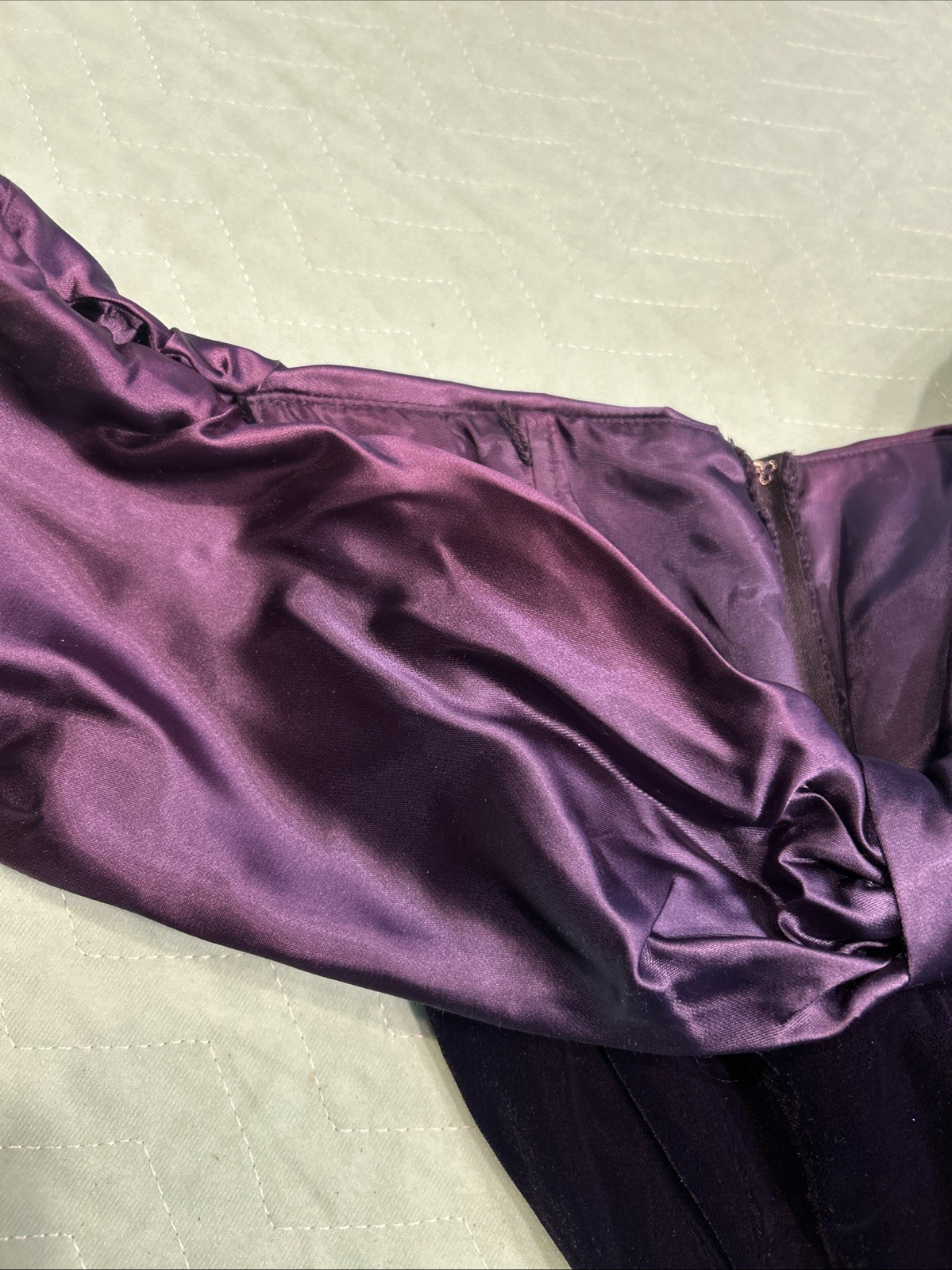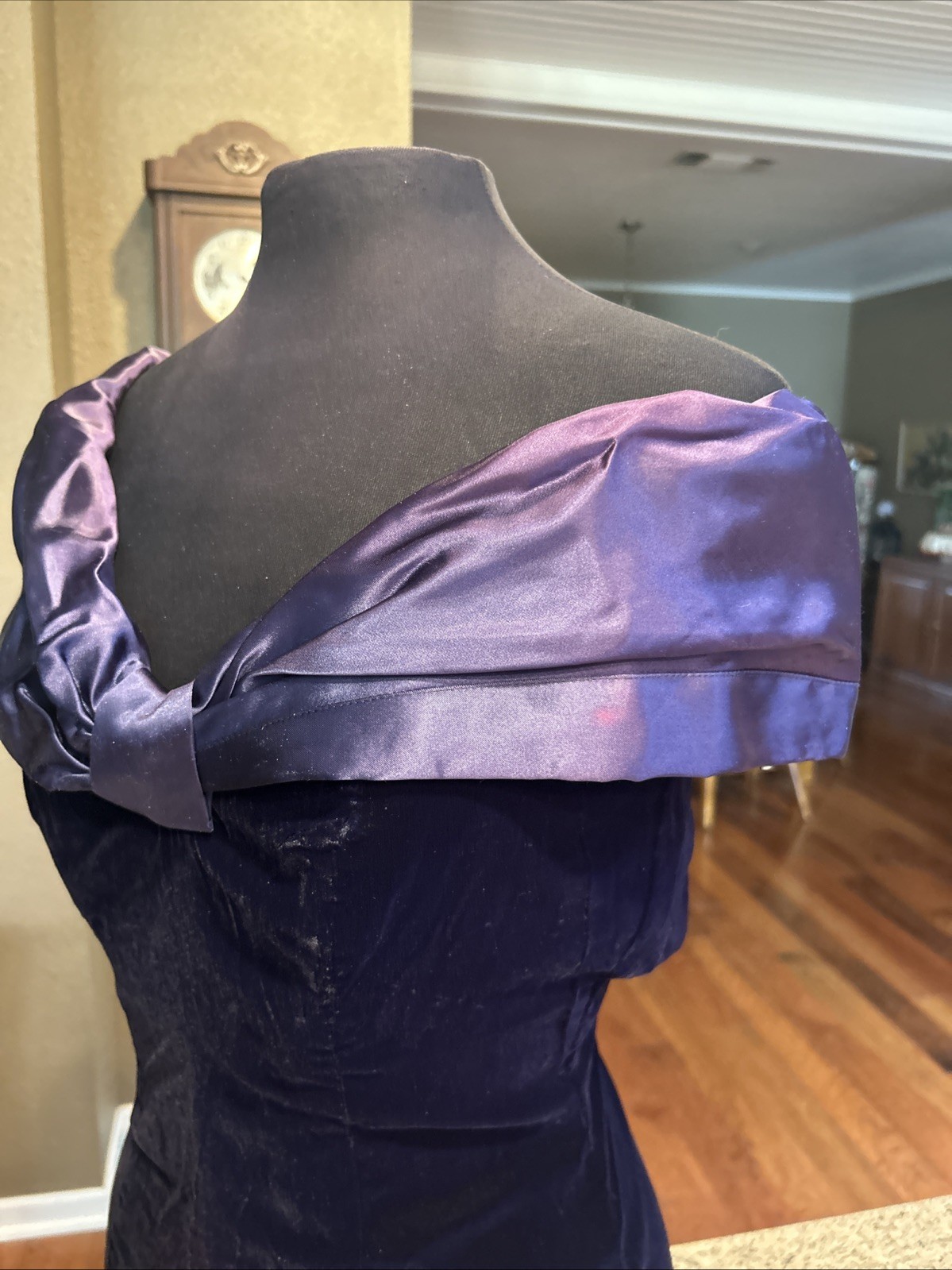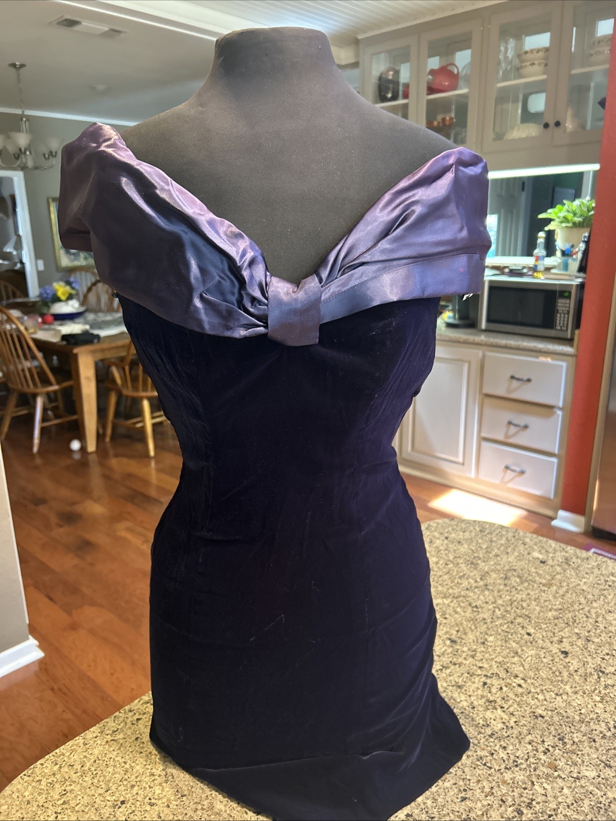 Vintage 80's ZUM ZUM Off Shoulder Short Prom Dress, Size 7/8 Purple Velvet NWT