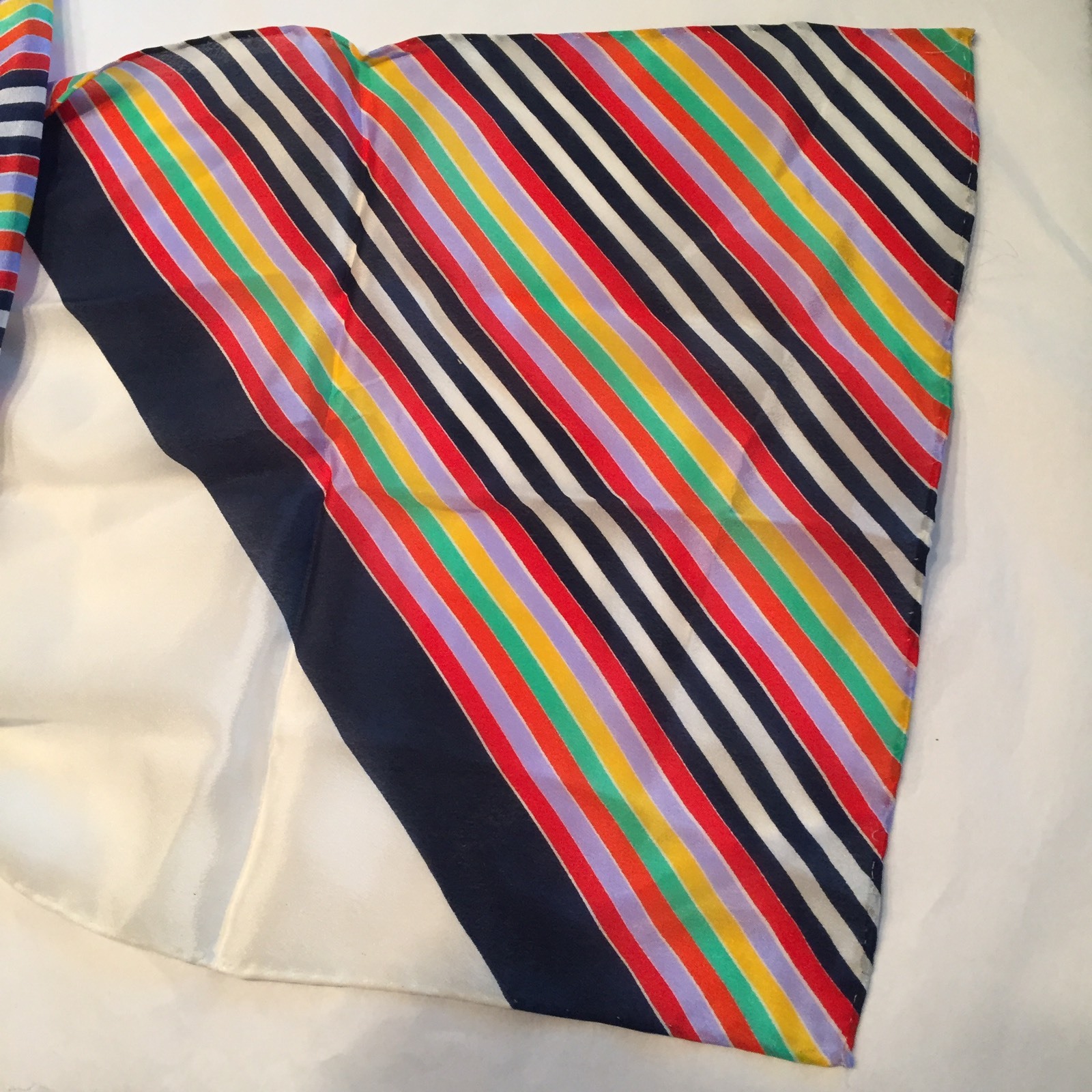 как выглядит Vtg 1980s Barr Beards Silk Scarf 10"x50" Rolled Hem Diagonal Stripes Abstract фото