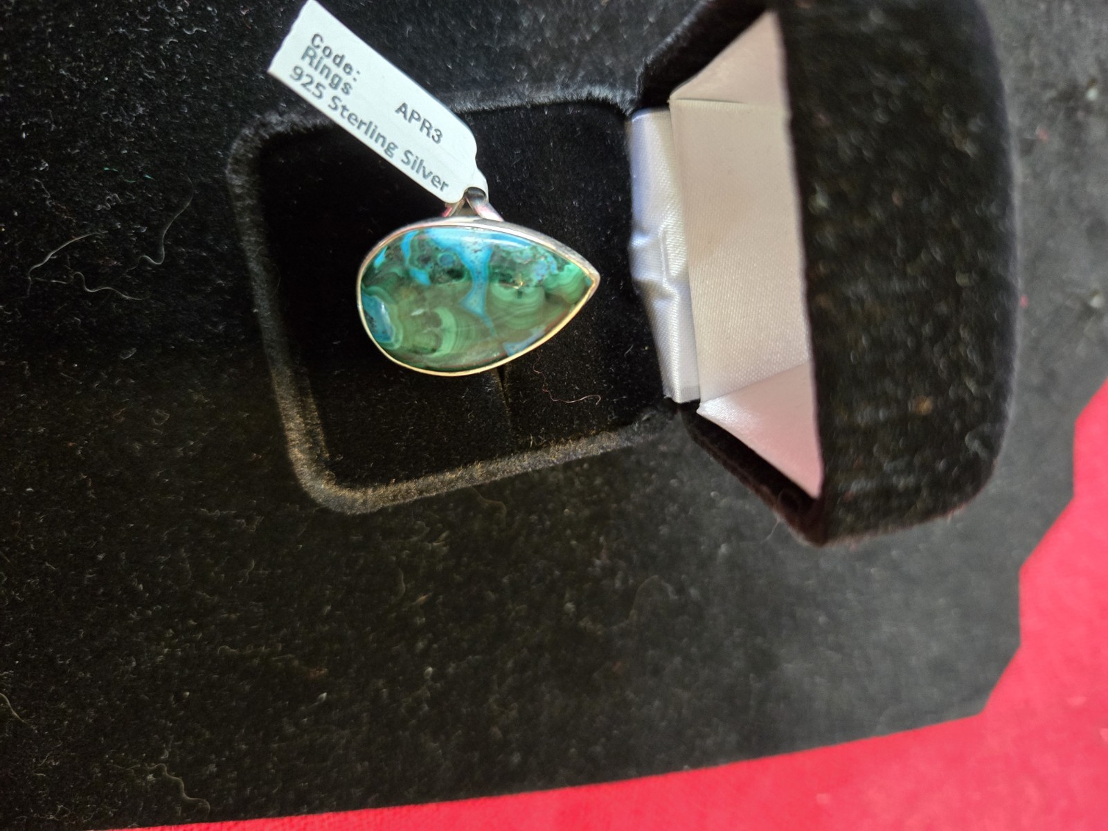как выглядит Sterling Silver Blue/Green Azurite Malachite Ring Sz 7 фото