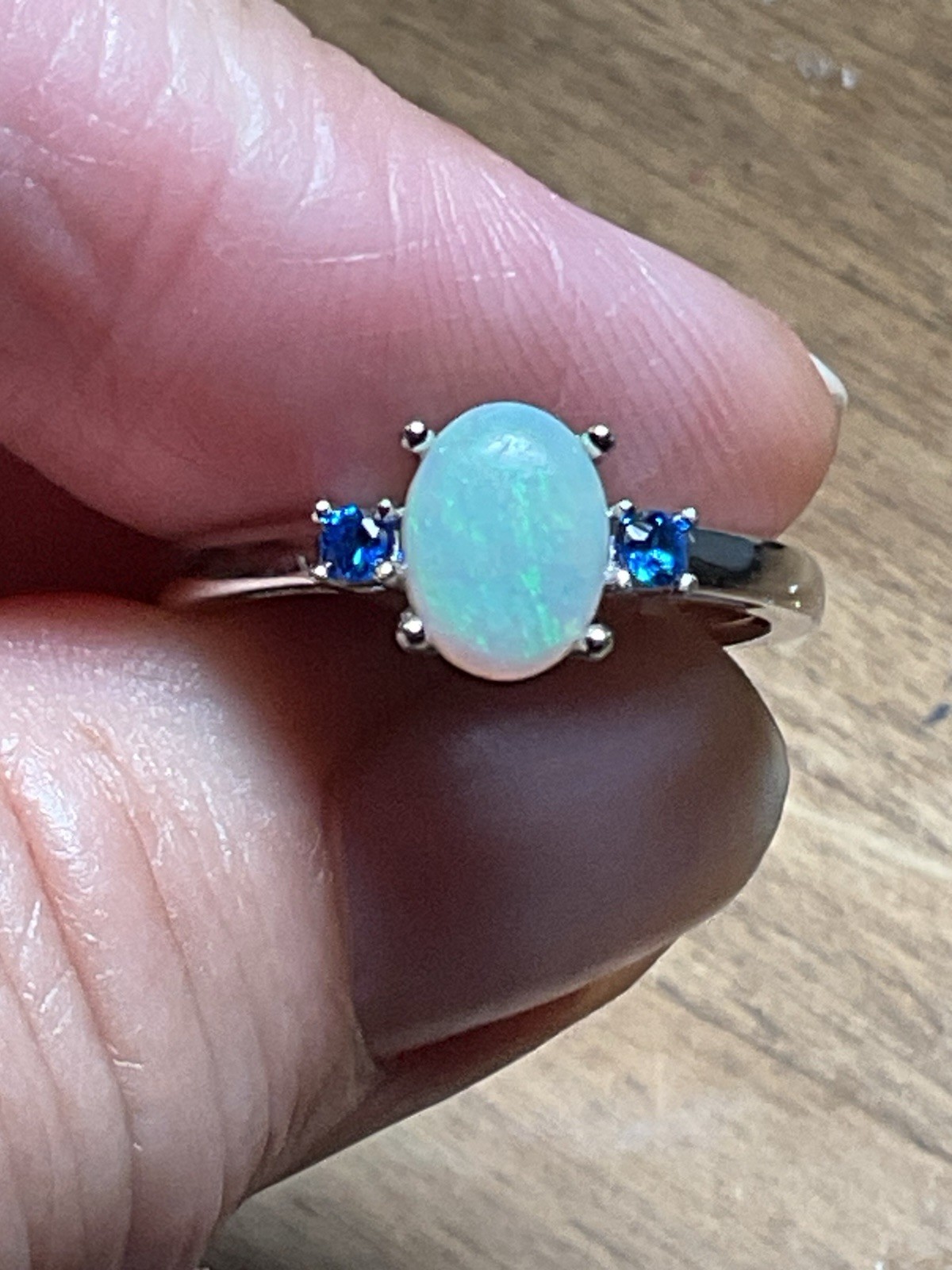 Opal And Blue Tourmaline .925 Silver Ring 7