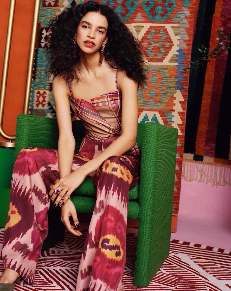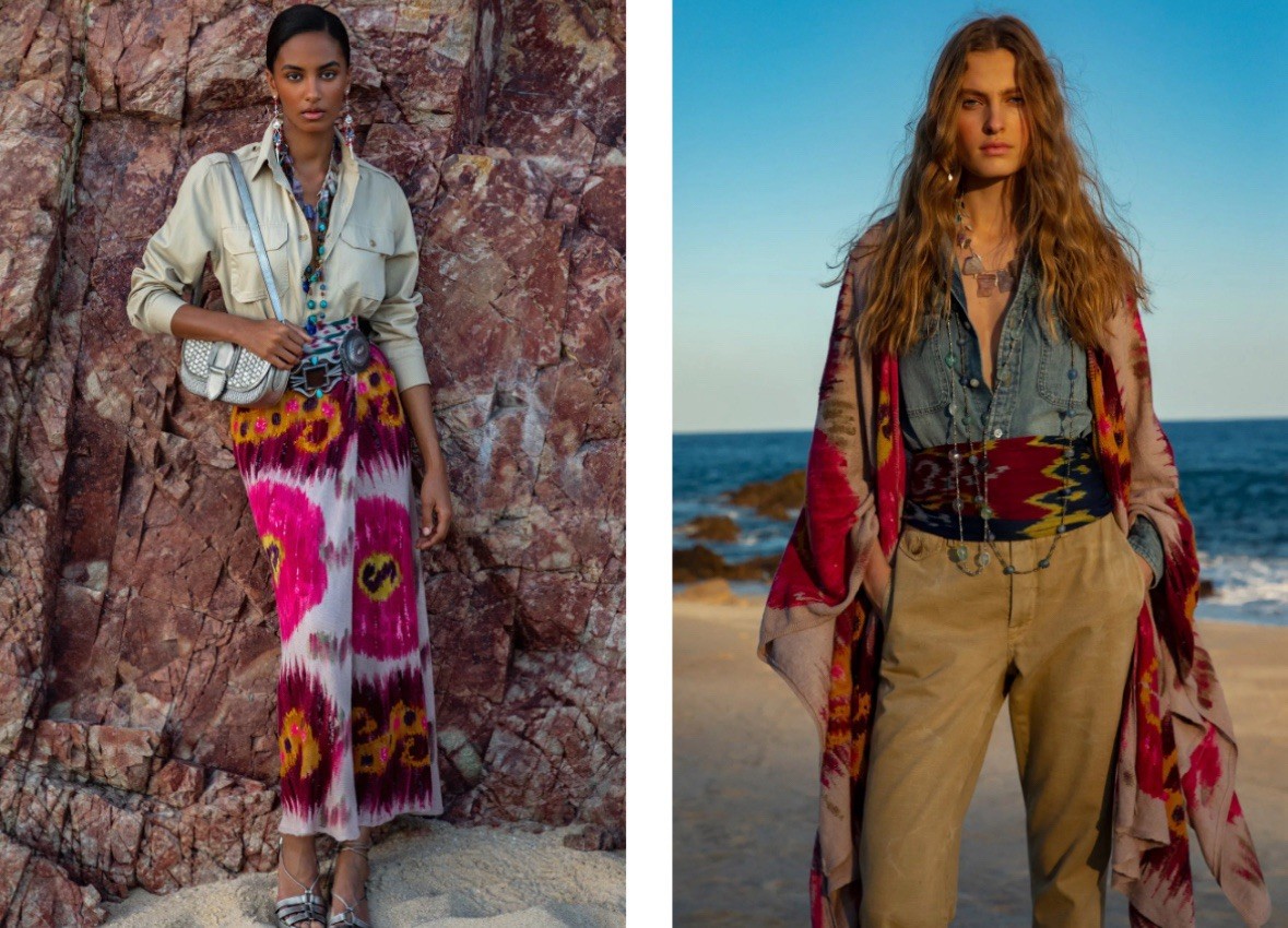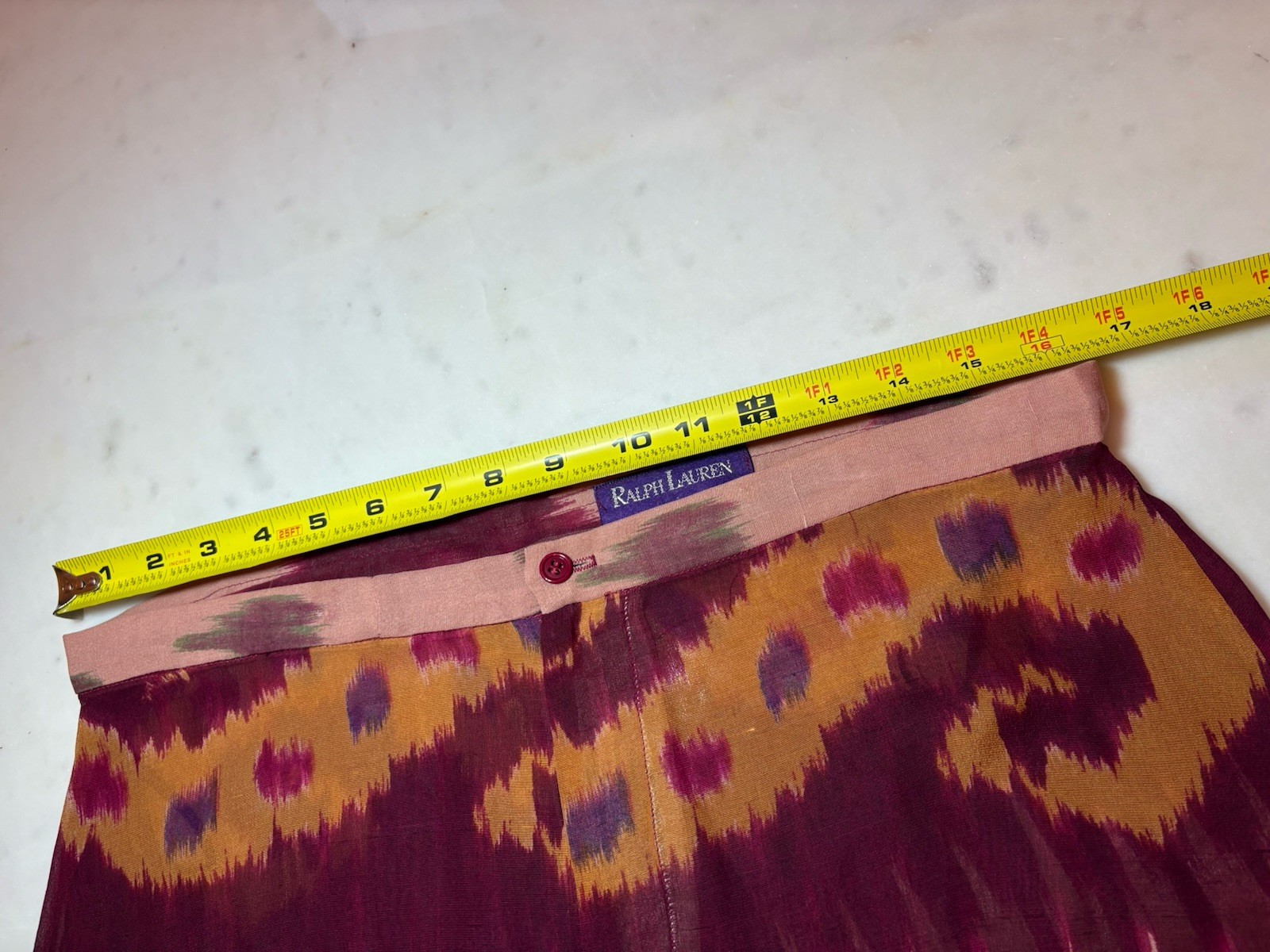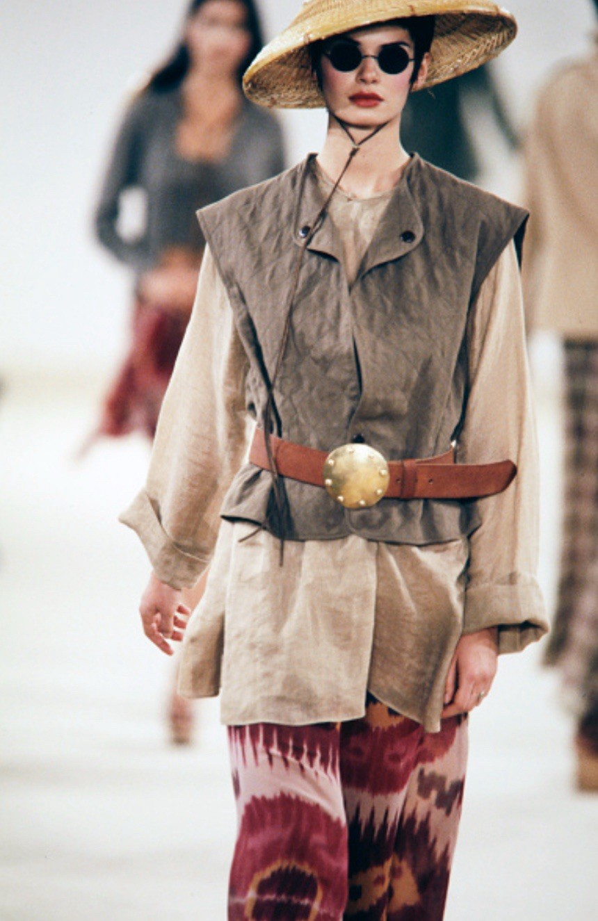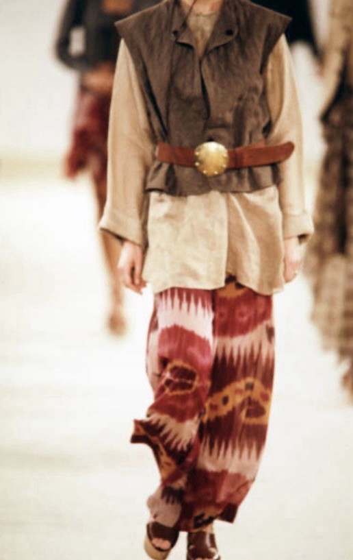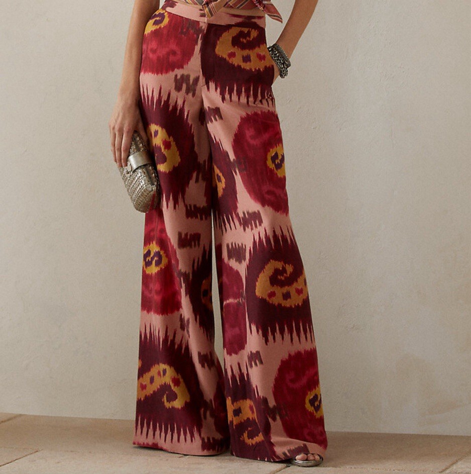 как выглядит Vintage Ralph Lauren Purple Label Wide Leg Silk Pants ikat Printed 1990s Runway фото