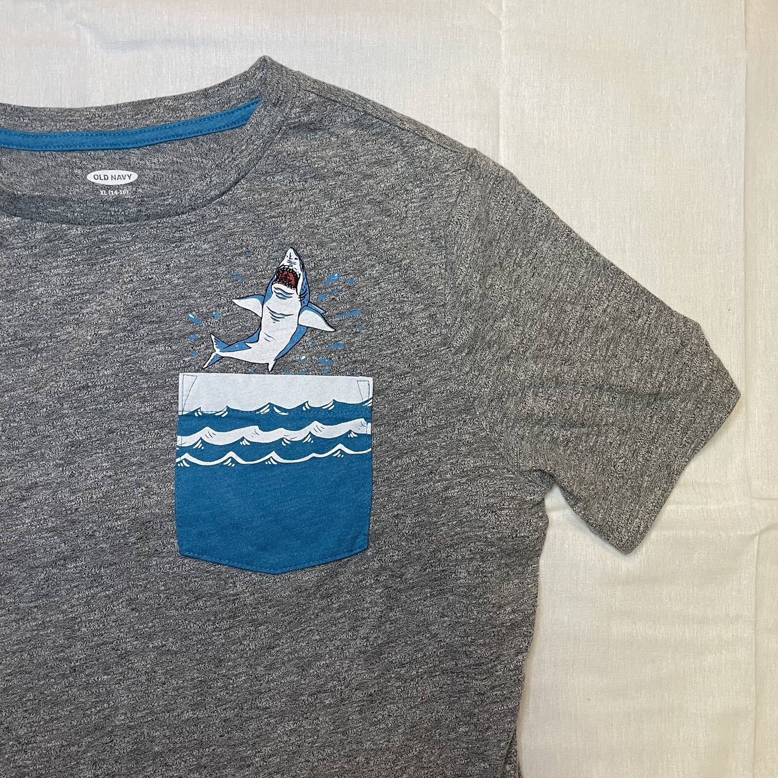Old Navy Shark Graphic Pocket Tee Crew-Neck T-Shirt for Boys XL 14-16 Gray