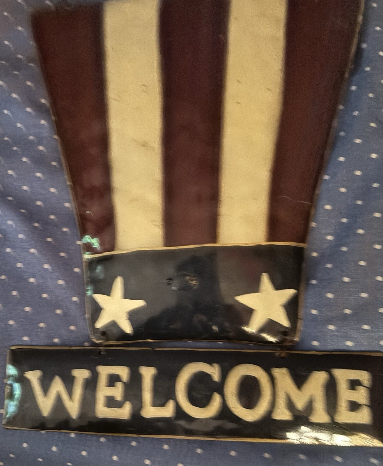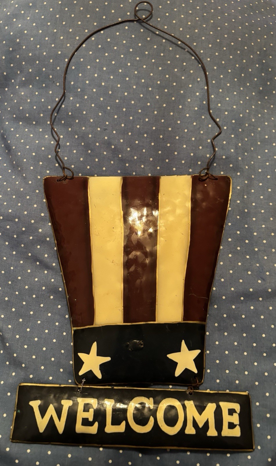 Patriotic Welcome Sign/Hanging Wall Decor, Uncle Sam Hat About 17 x 7.5