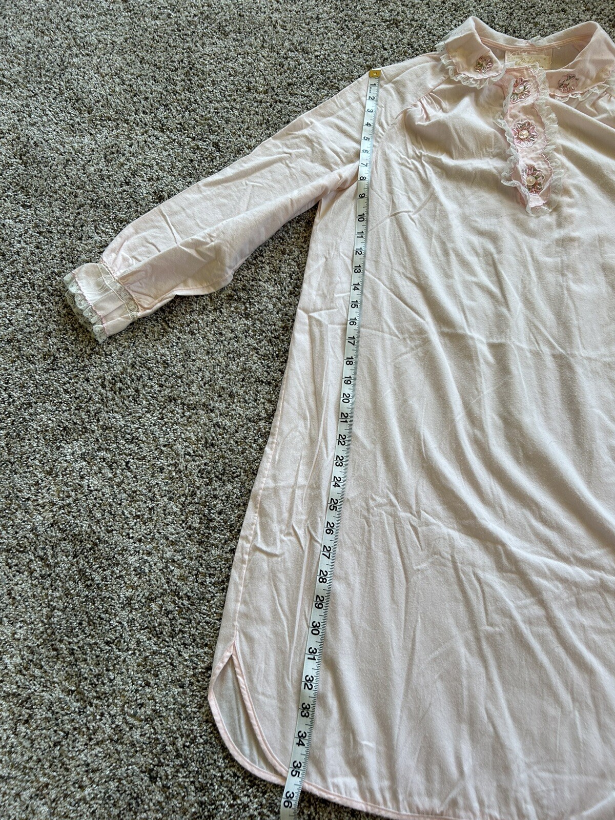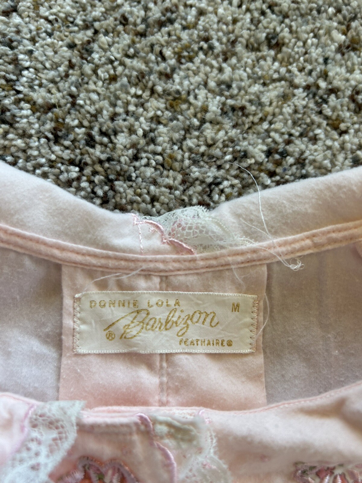 VINTAGE BARBIZON sz M NIGHTGOWN Feathaire Embroidered Lace Cottagecore PINK Y24