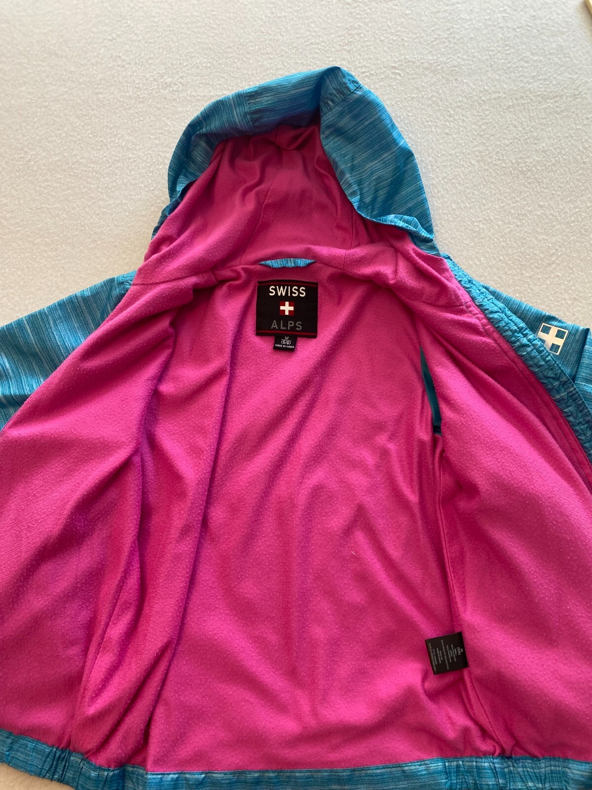 как выглядит Swiss Alps Basic Jacket Kids Medium Blue Hooded Full Zip Pocket Eastic Cuff Hem фото