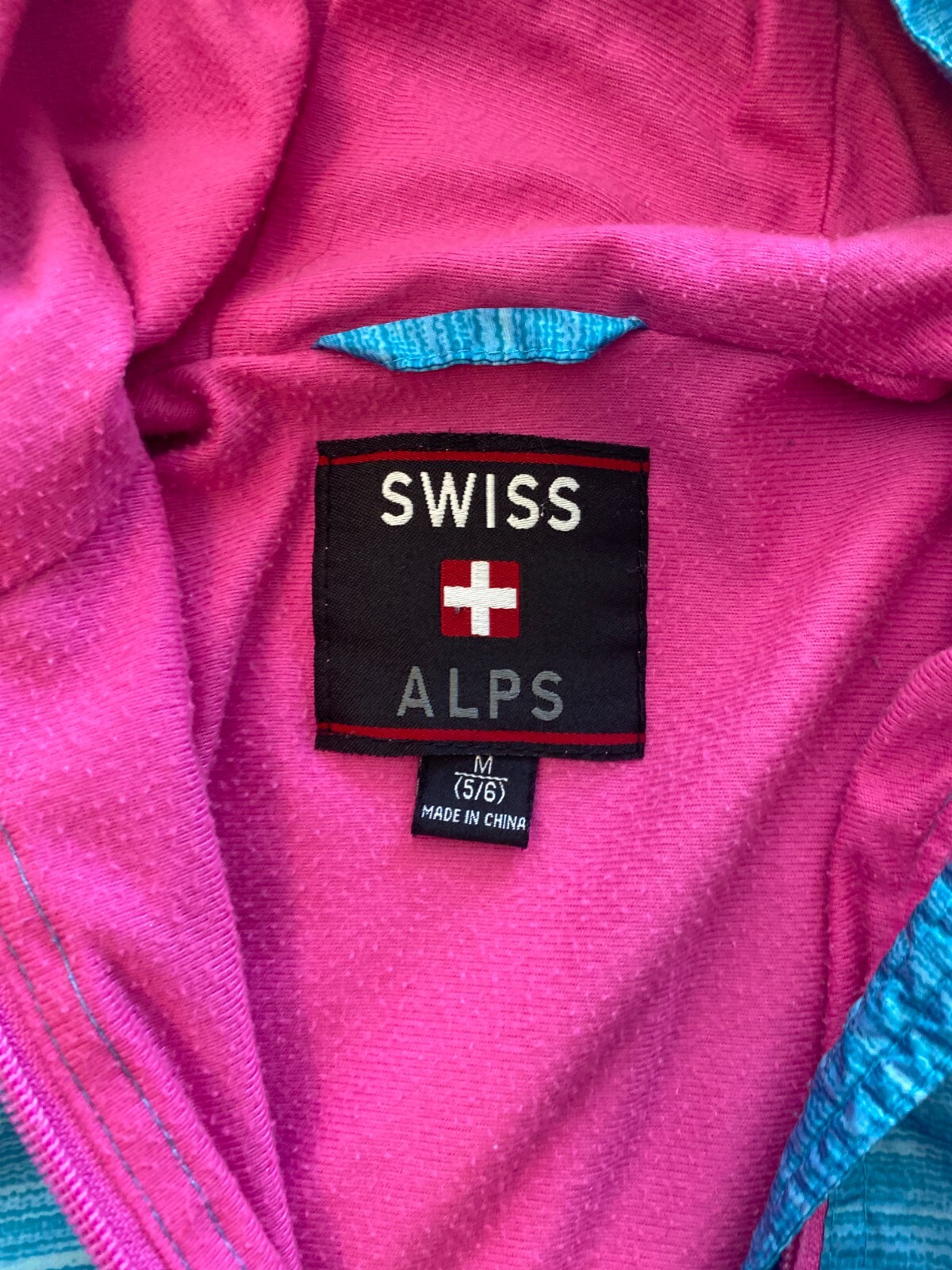 Swiss Alps Basic Jacket Kids Medium Blue Hooded Full Zip Pocket Eastic Cuff Hem