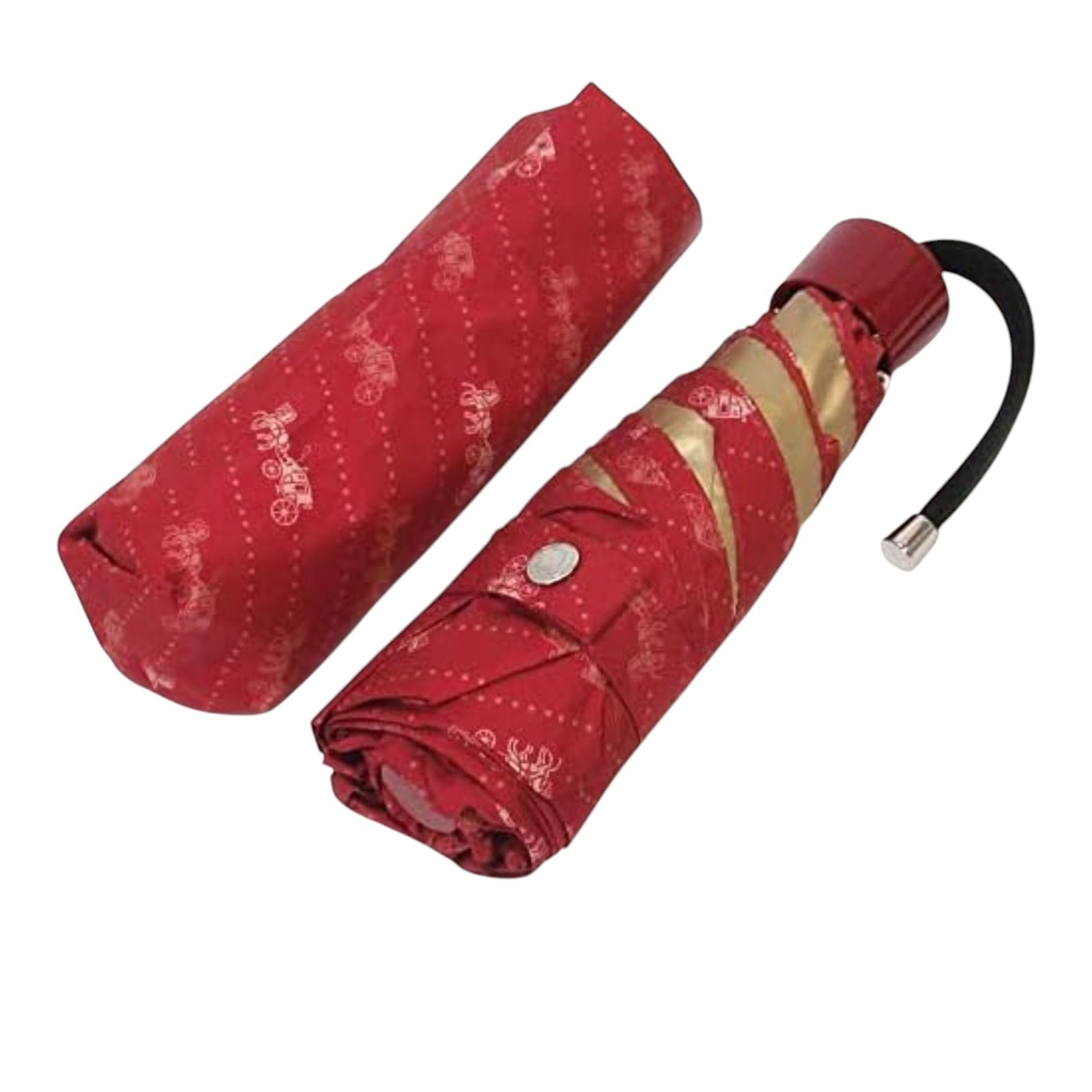 COACH MINI UMBRELLA UV PROTECTION IN BRIGHT RED HORSE CARRIAGE PRINT