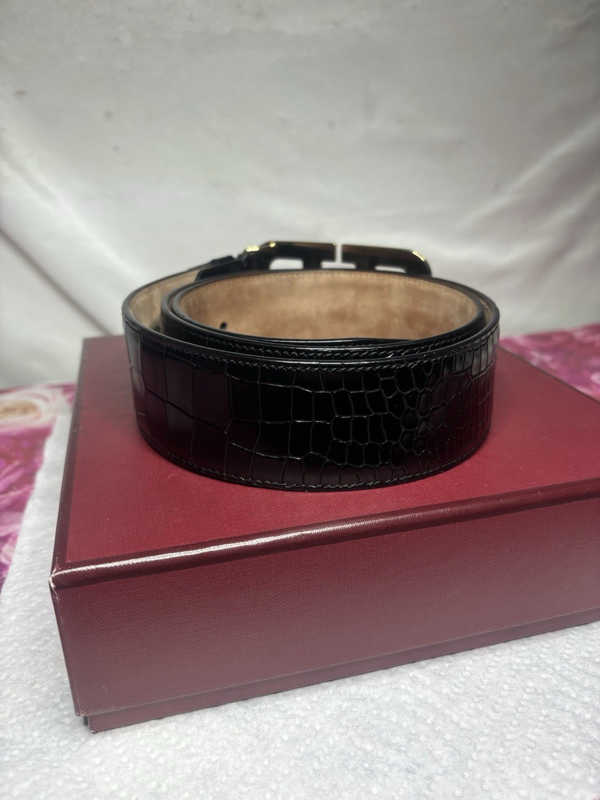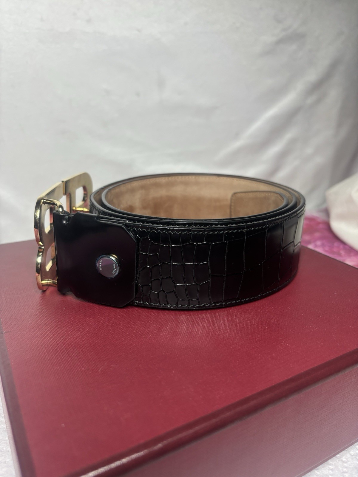 как выглядит Men s Black Leather Bally Belt scratches On Buckle фото