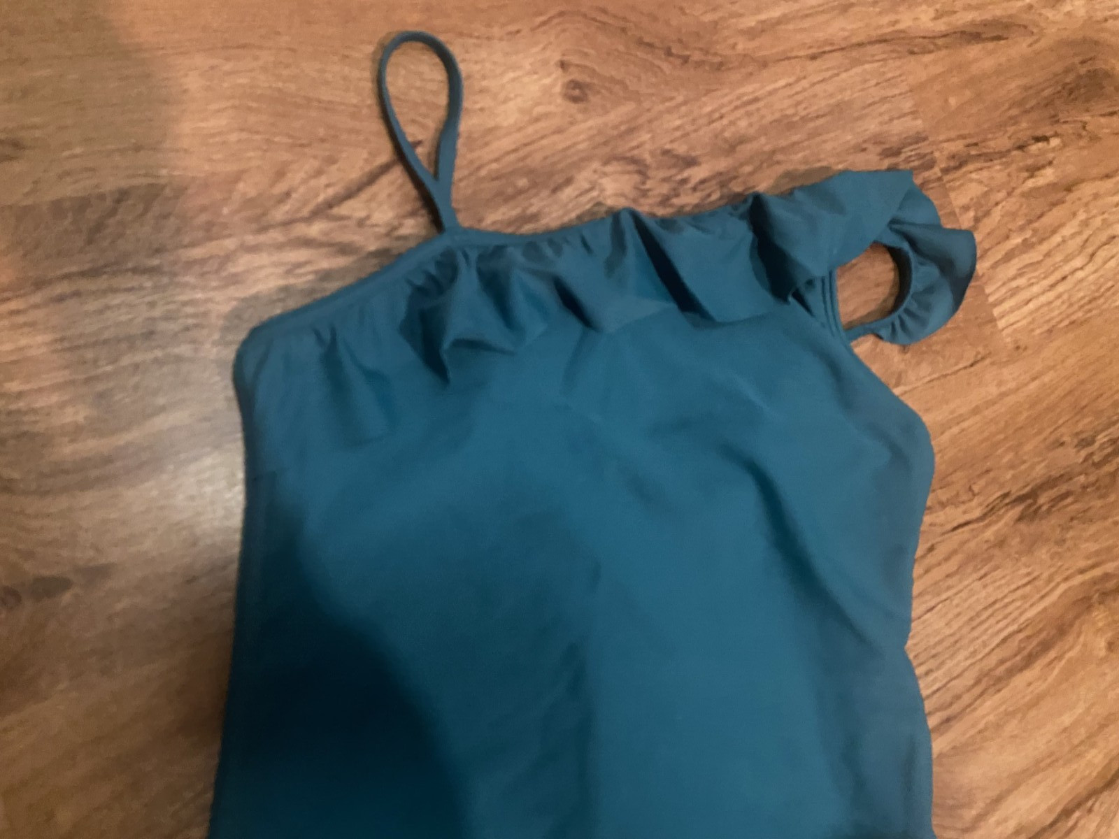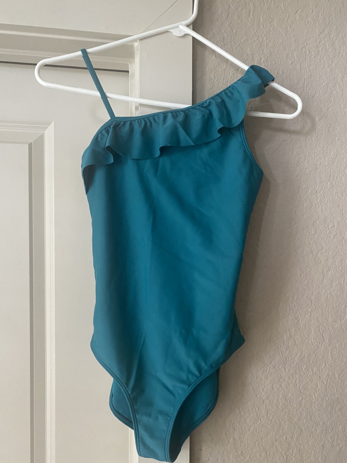 как выглядит Girls Abercrombie Kids Asymmetrical Ruffle One Piece Swimsuit 13/14 NWOT фото