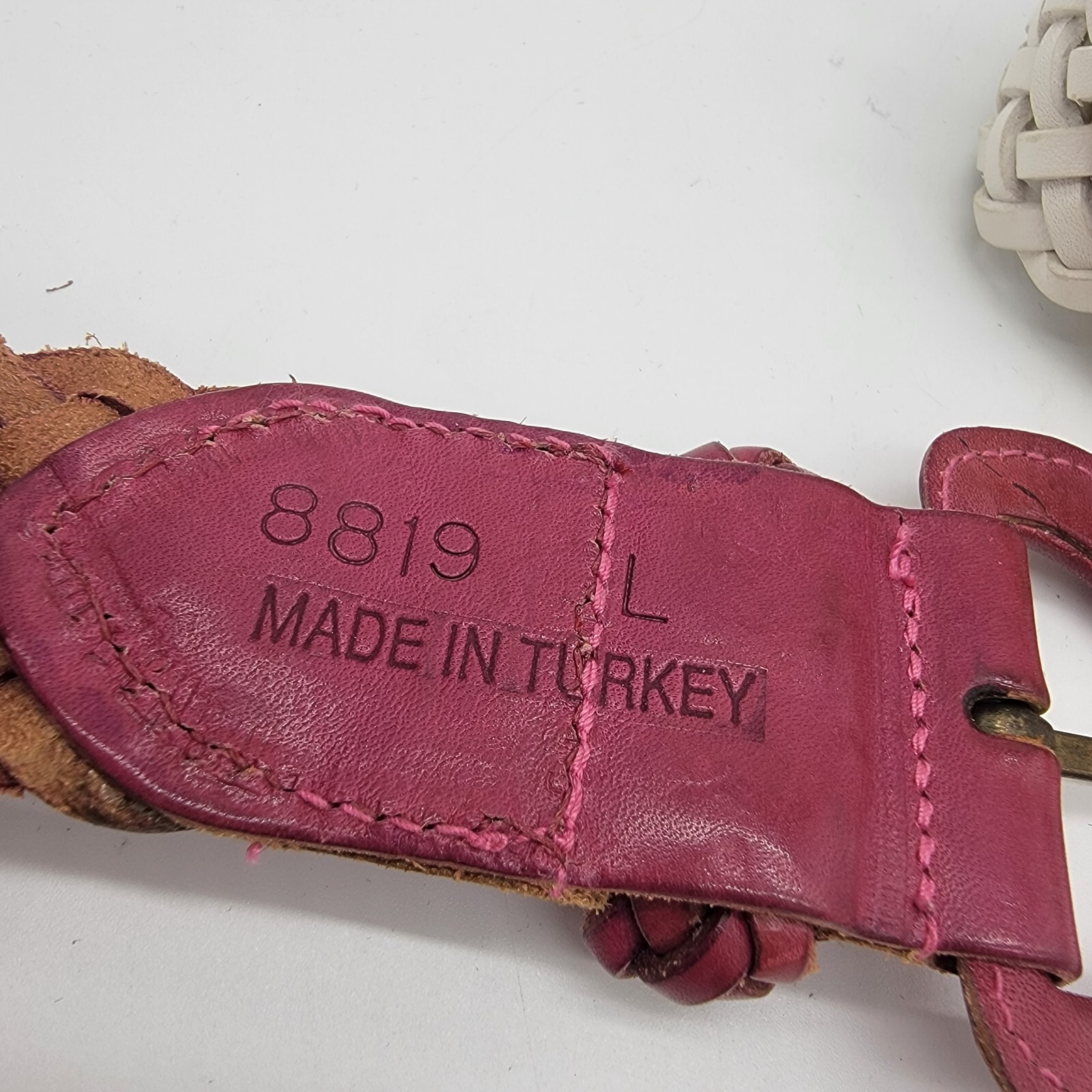 Pair Of 80s Genuine Leather Braided Woven Women's Belts Sz M 37 Vintage Turkey