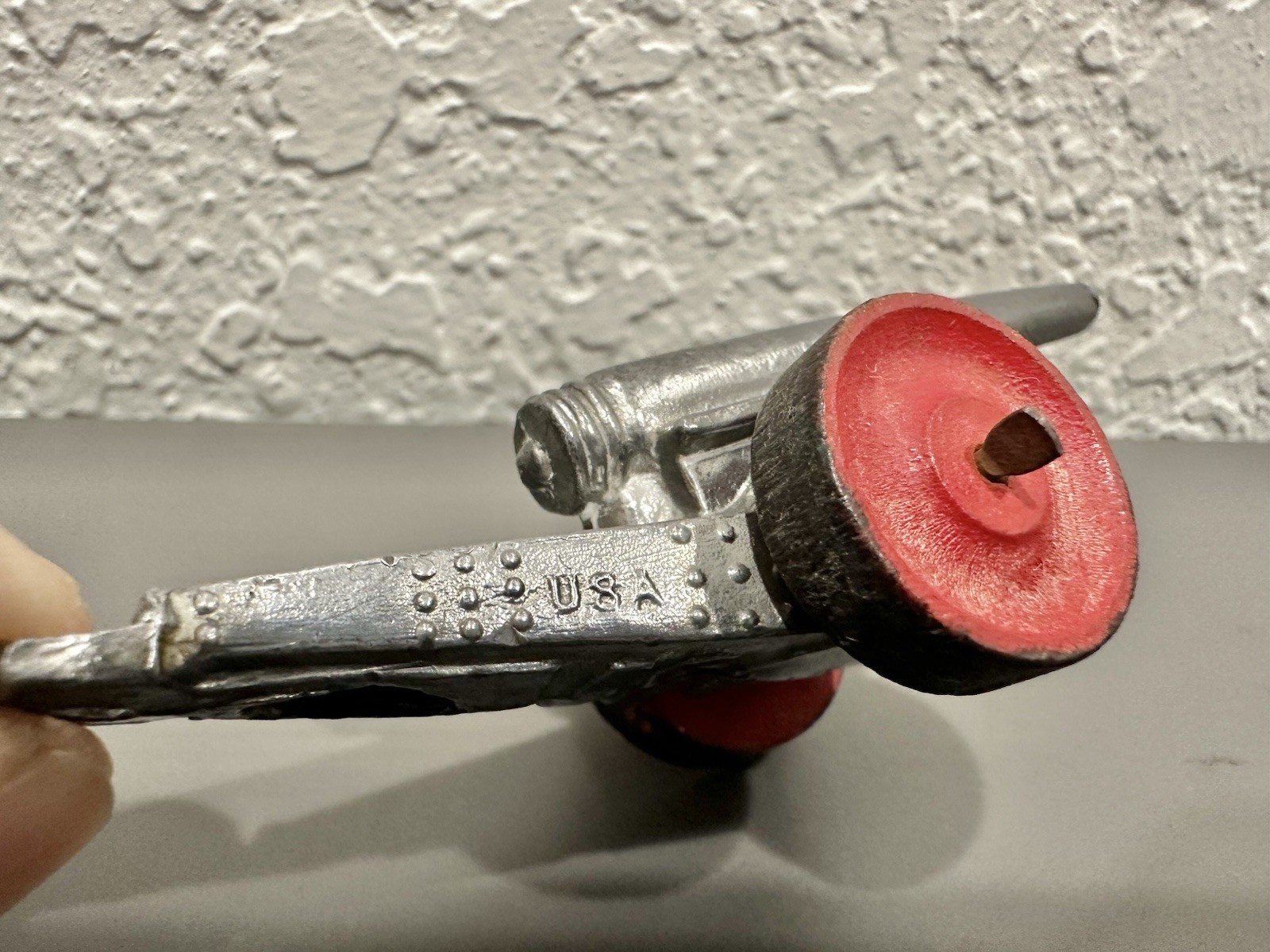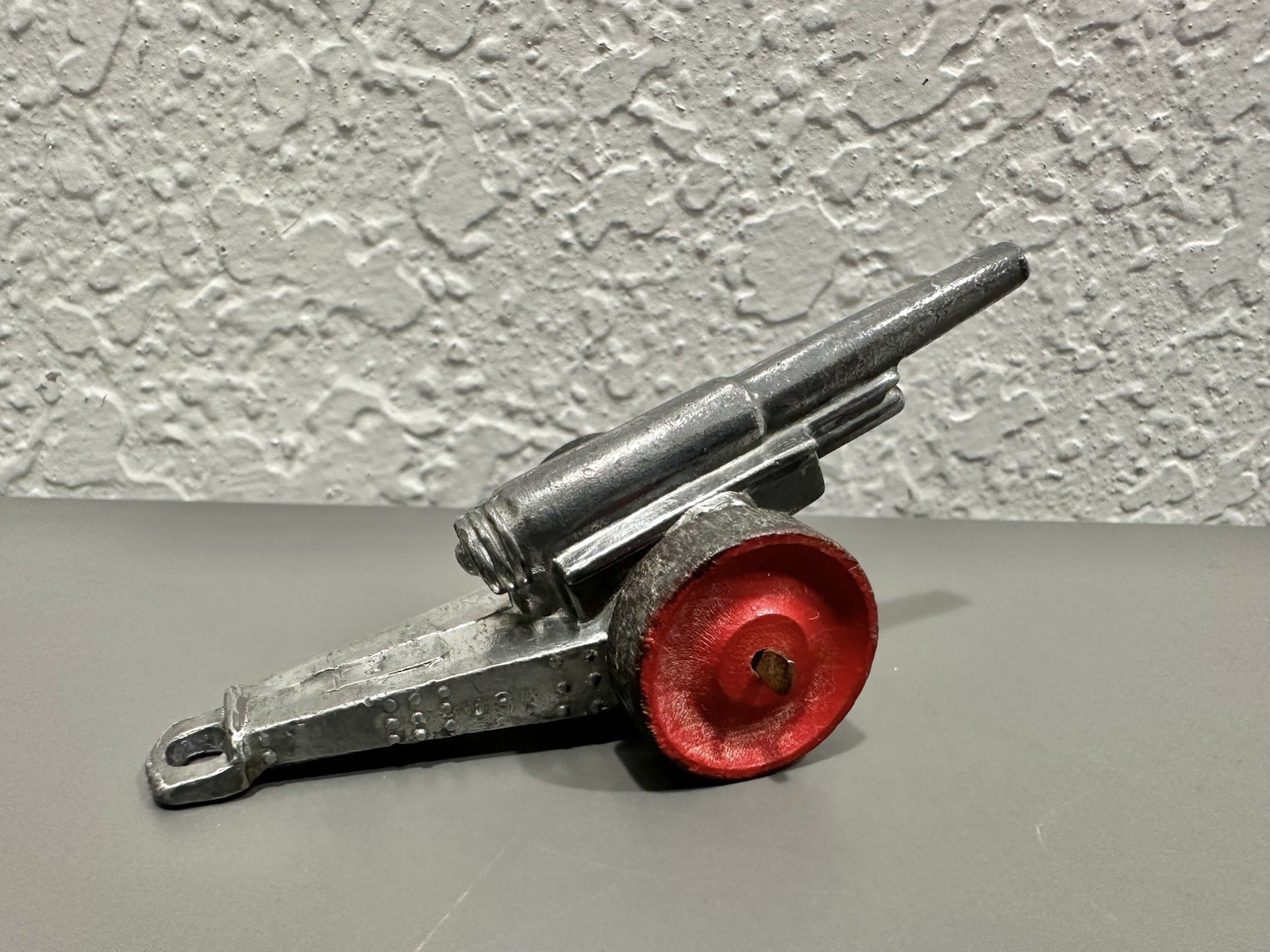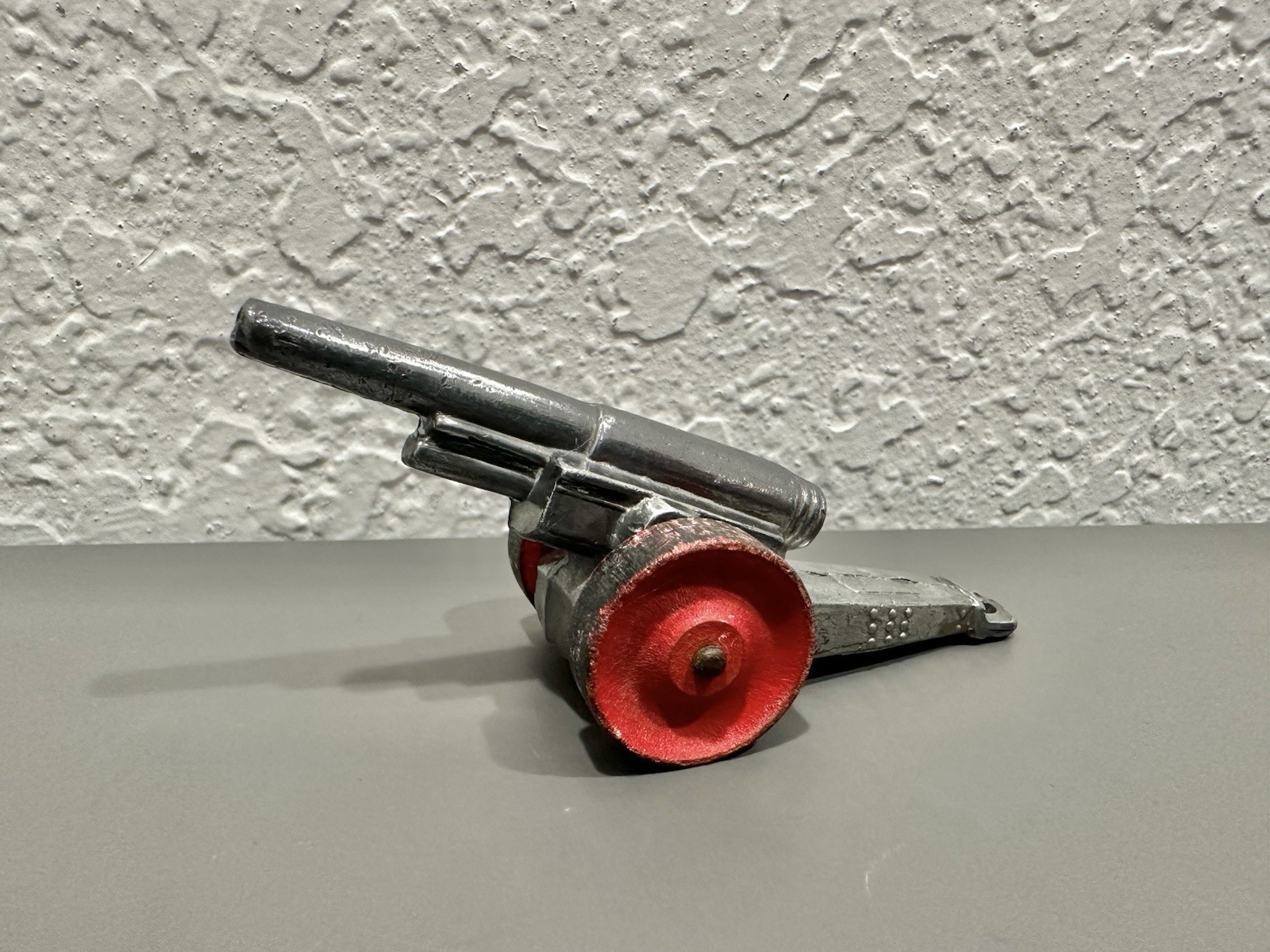 Barclay Manoil Lead Army Cannon, Wood Wheels - Dime Store Grey Metal