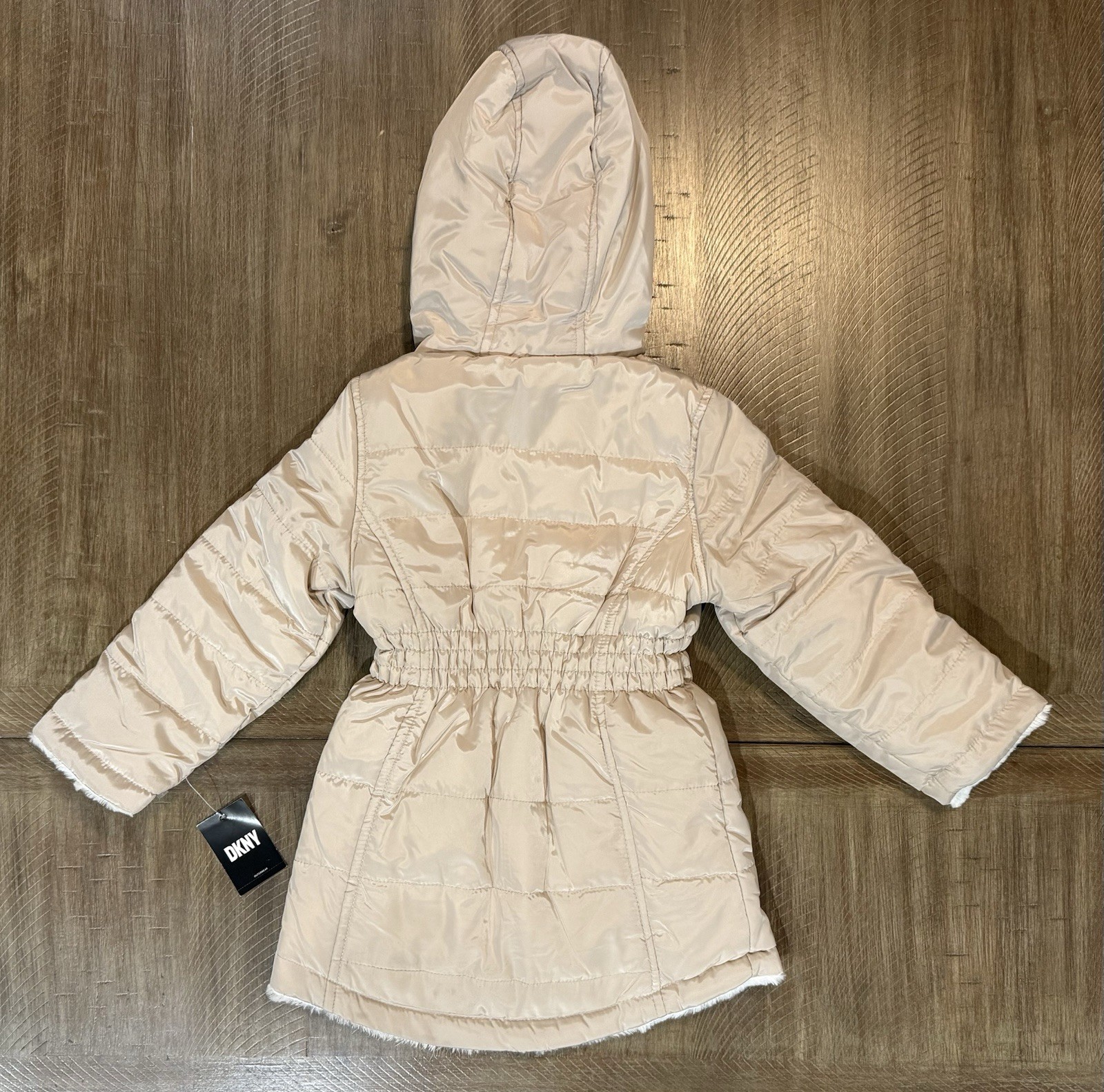как выглядит NWT DKNY Beige Sand Cream Faux Fur Lined Reversible Full Zip Coat Jacket Size 4T фото