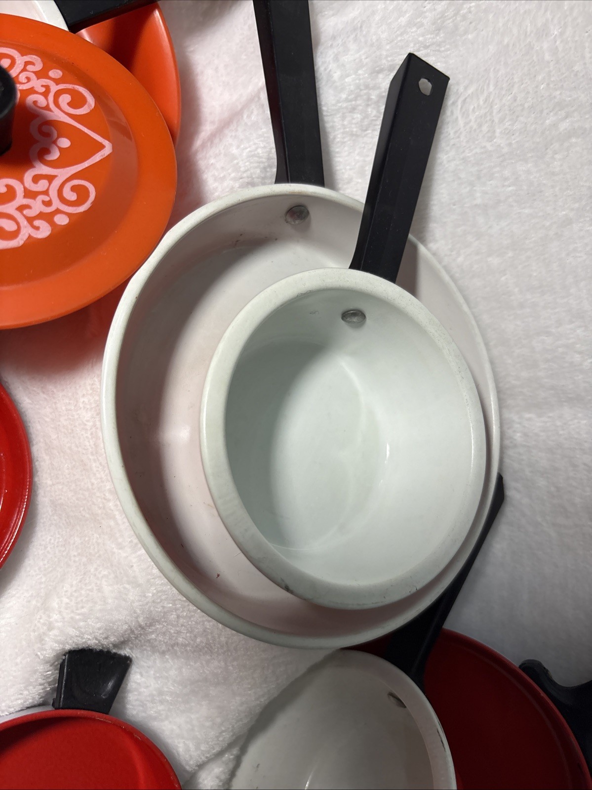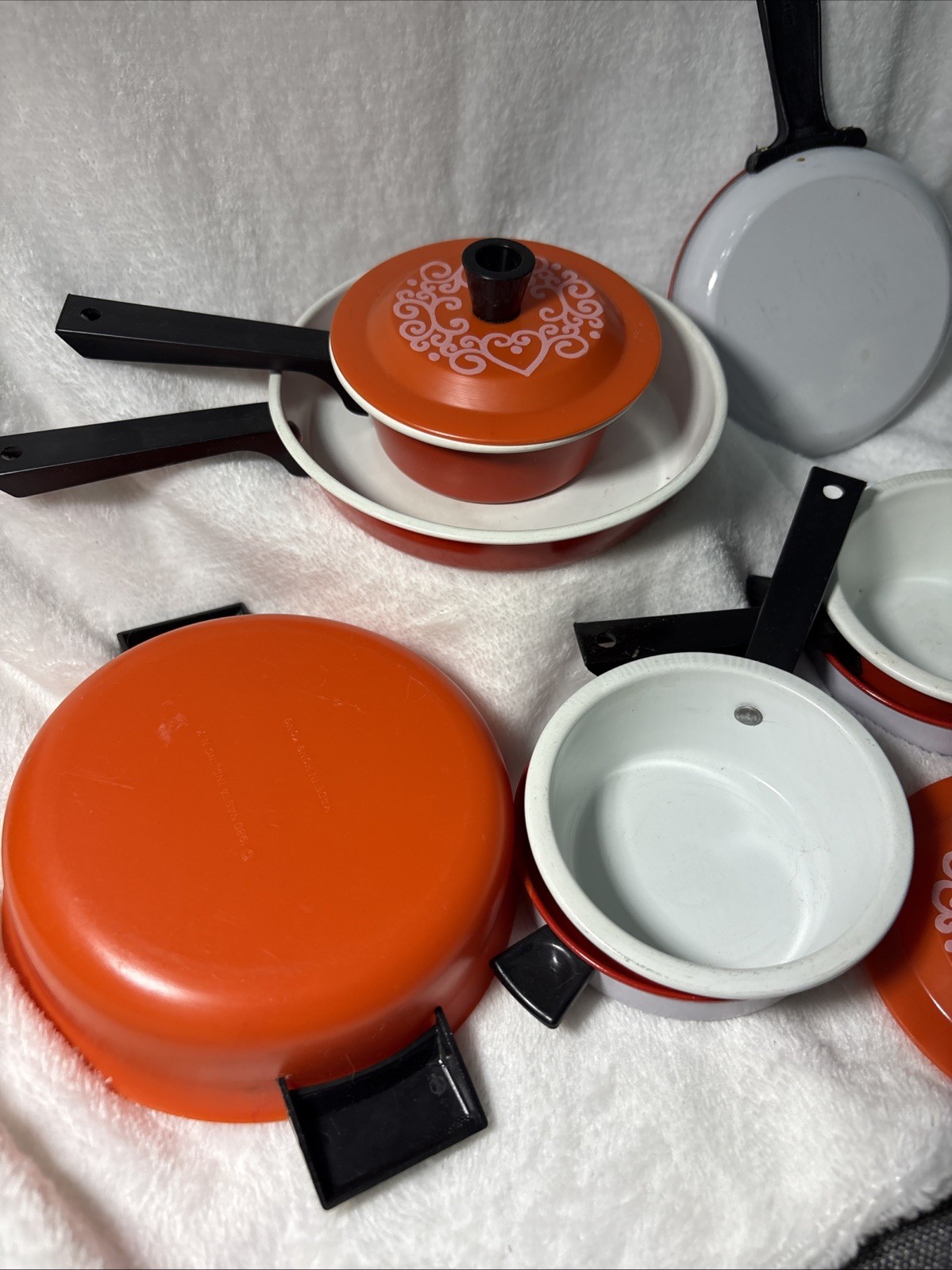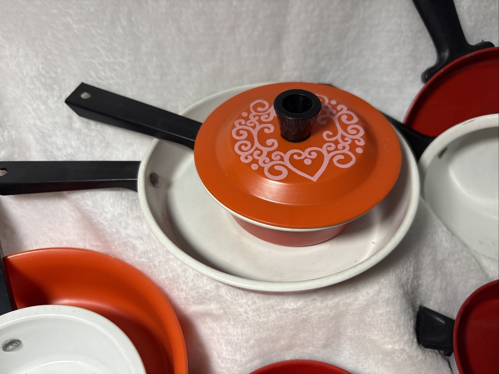 Child Play Pan Set Red White Hearts Vintage 11 Pieces