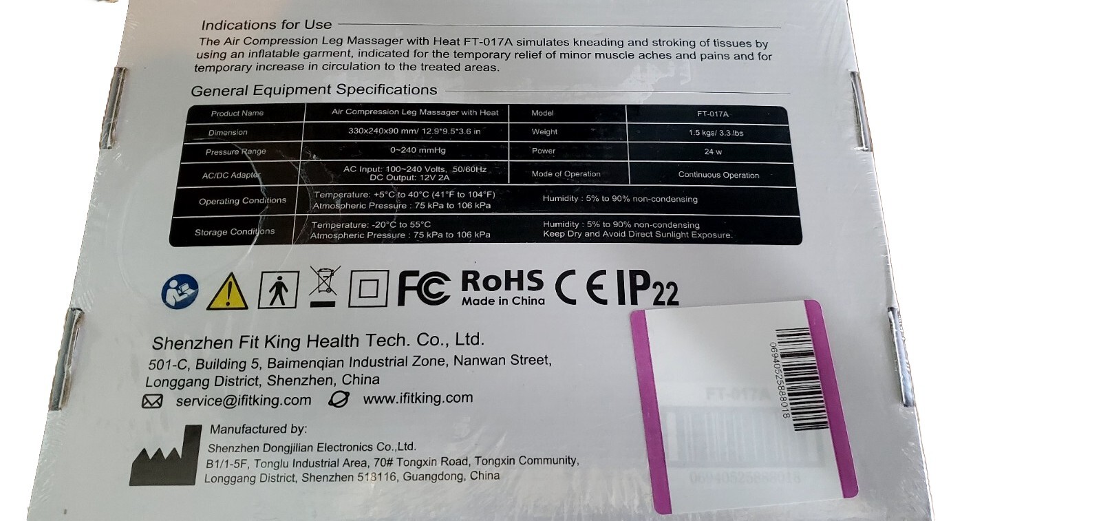FIT KING Leg Air Massager Heat Compression Therapy FT-017A