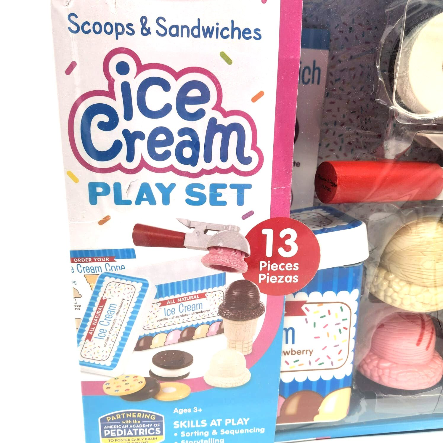 Melissa Doug 13-Piece Wooden Ice Cream Sandwich Scoop Set Pretend Play Toy