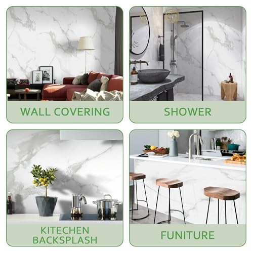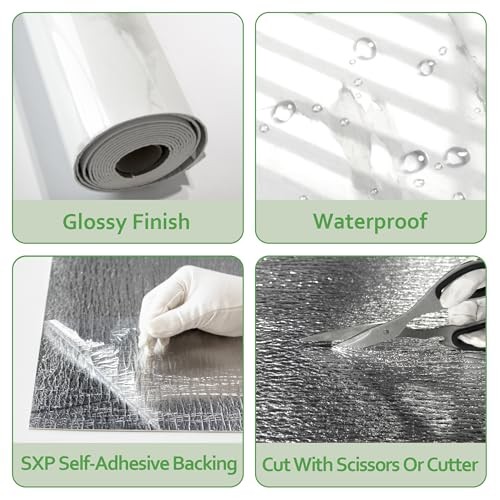 Marble Peel and Stick Waterproof Wall Paneling8 x 47 Glossy 1 Carrara White
