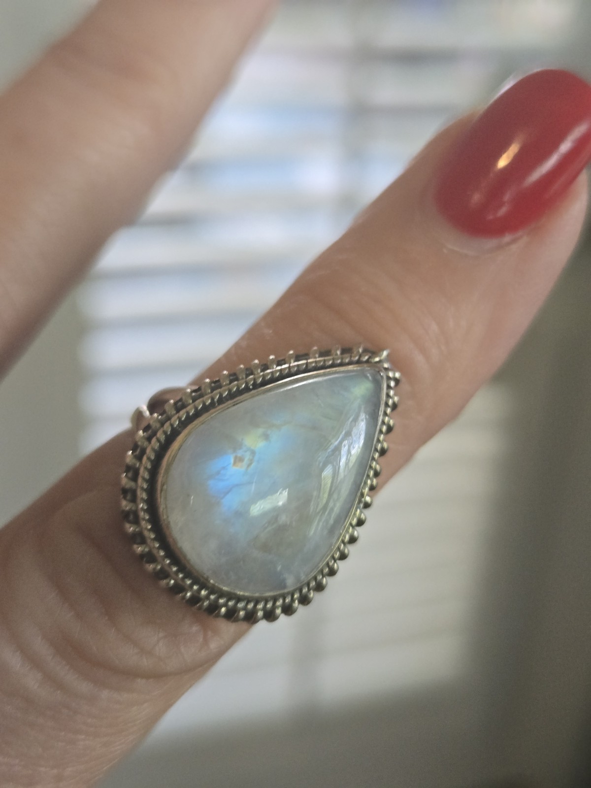 Sterling Silver Moonstone Teardrop Ring Sz 7