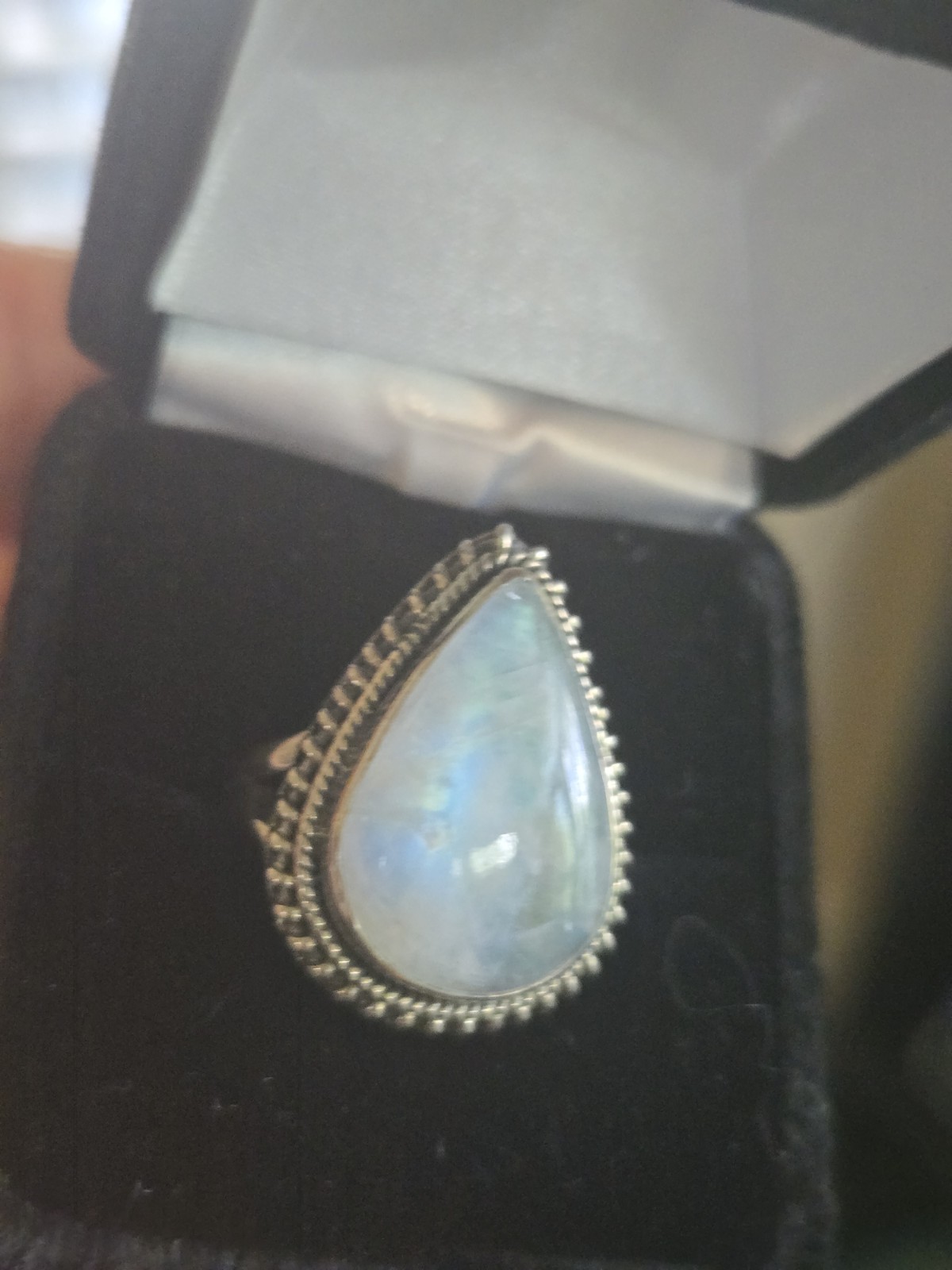 как выглядит Sterling Silver Moonstone Teardrop Ring Sz 7 фото
