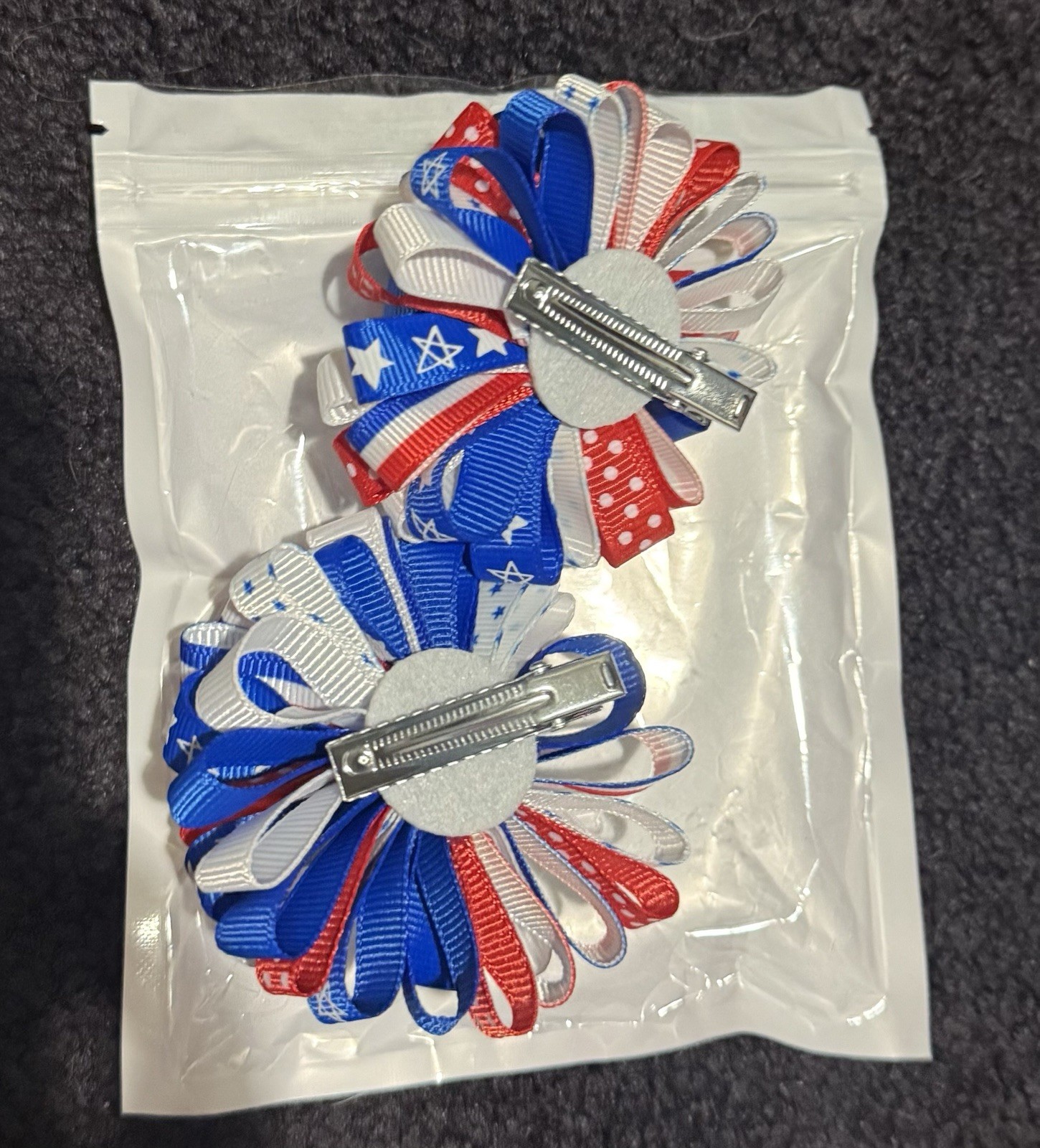 Patriotic 4th Of July Hair Pom Pom Bow Clips