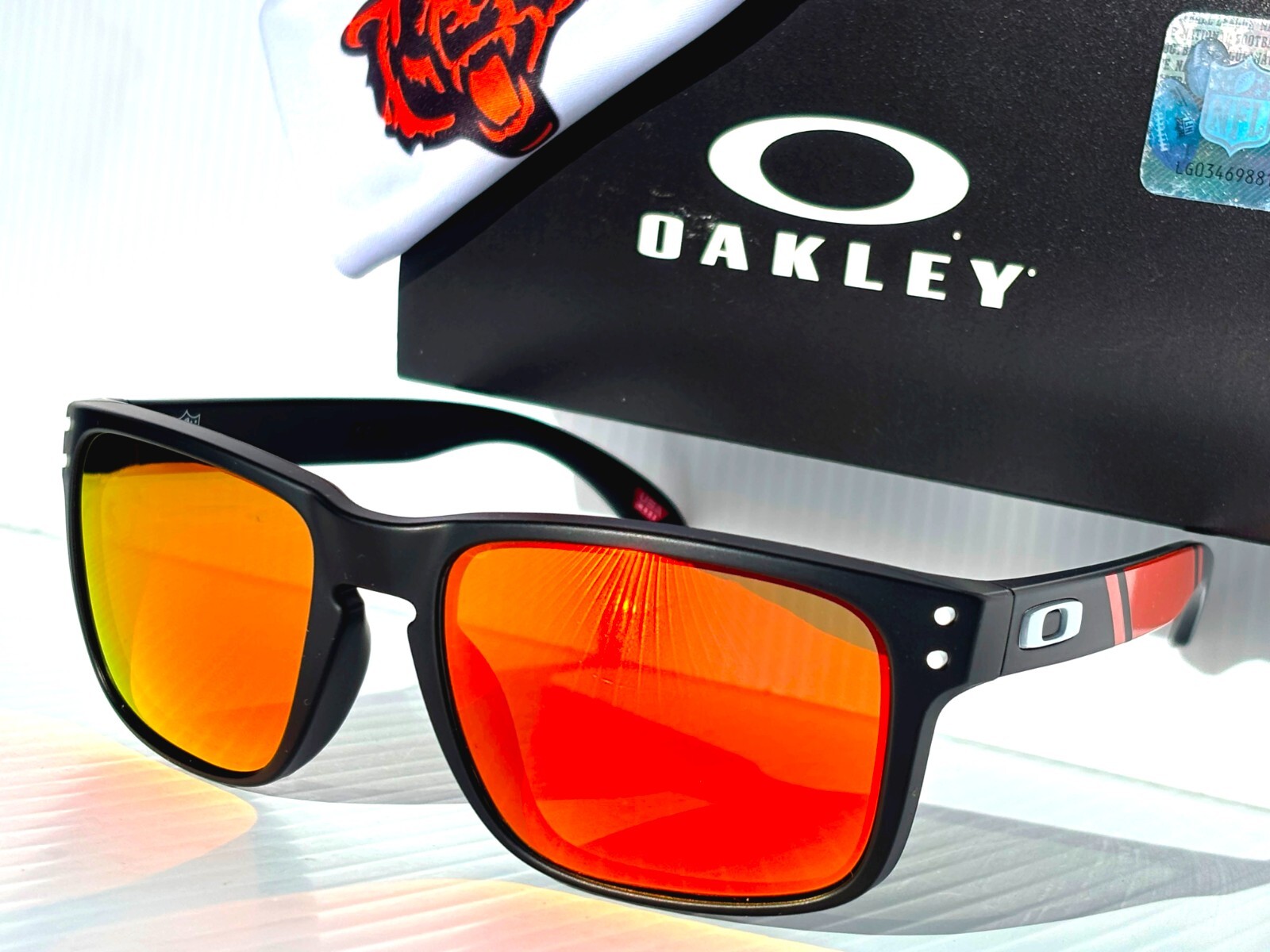 как выглядит NFL Oakley Holbrook Chicago BEARS Matte POLARIZED Galaxy Ruby Sunglass 9102-Q7 фото