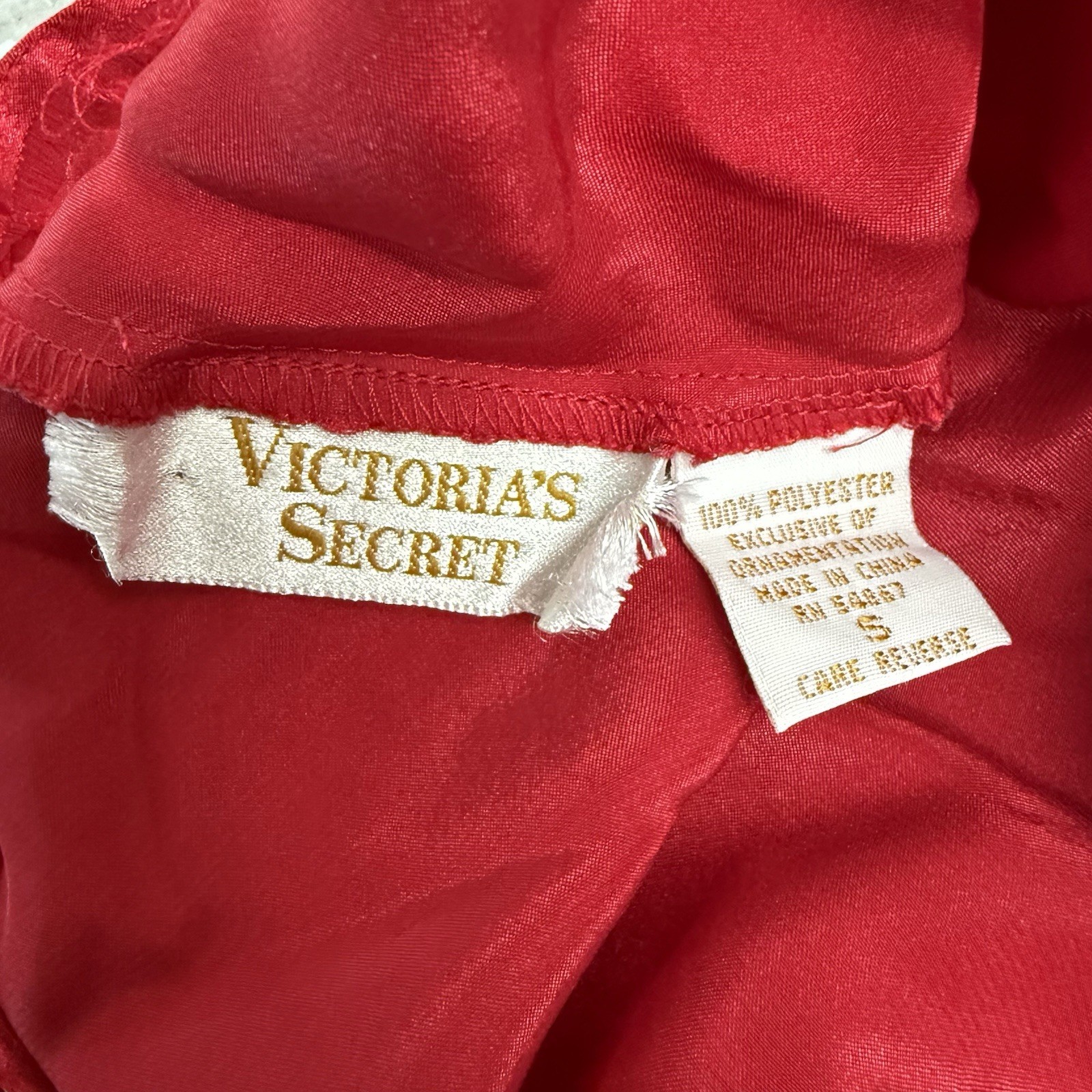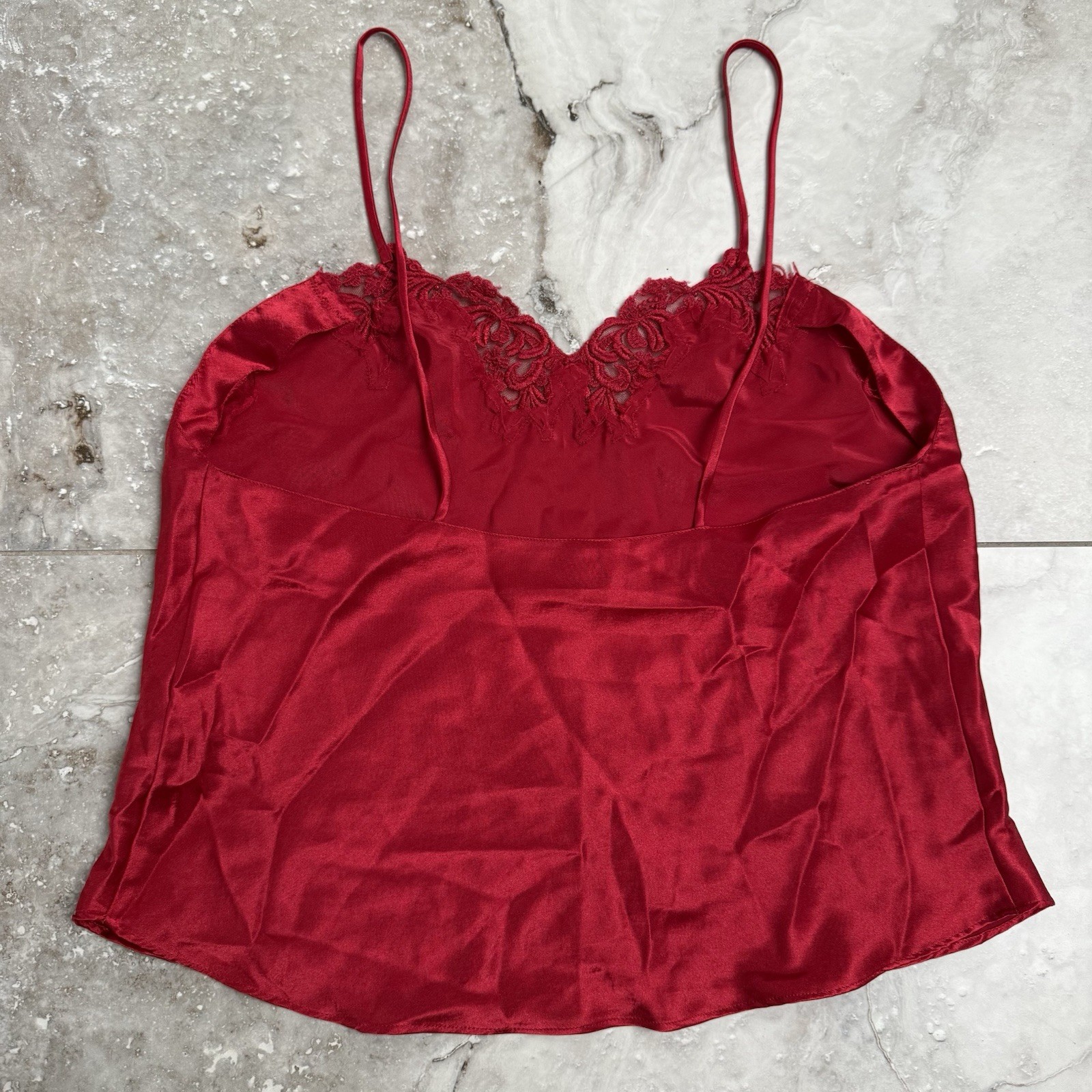 Vintage Victoria s Secret Red Satin Lace Camisole Lingerie Top Gold Label Small