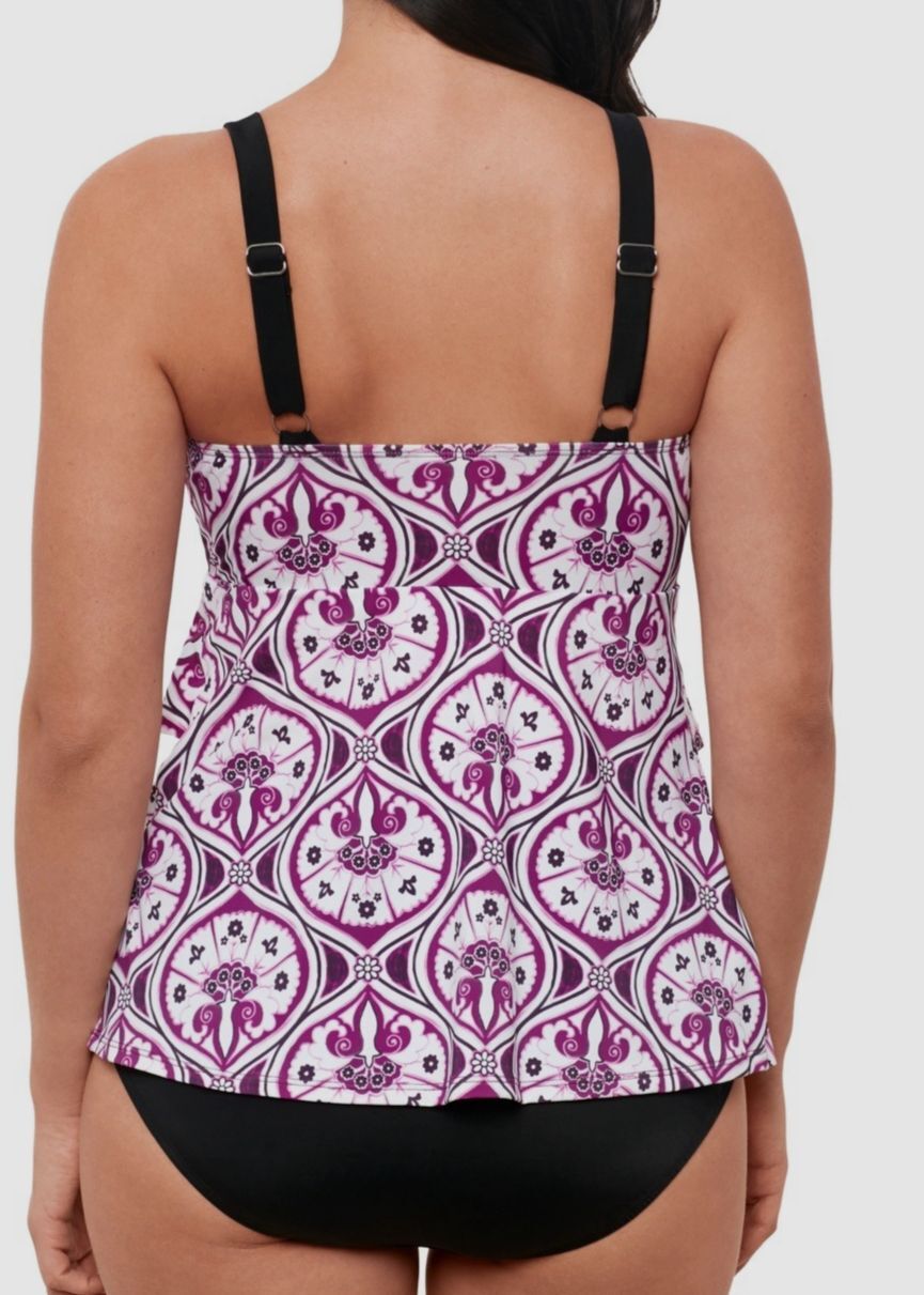 Swim Solutions Women Purple Printed Tiered Fauxkini One-Piece Swimsuit Size 18