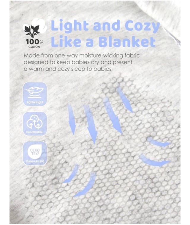 Baby Gray Sleep Sack PJ Cotton Open Foot Easy Diaper Change Swaddle Unisex 0-3