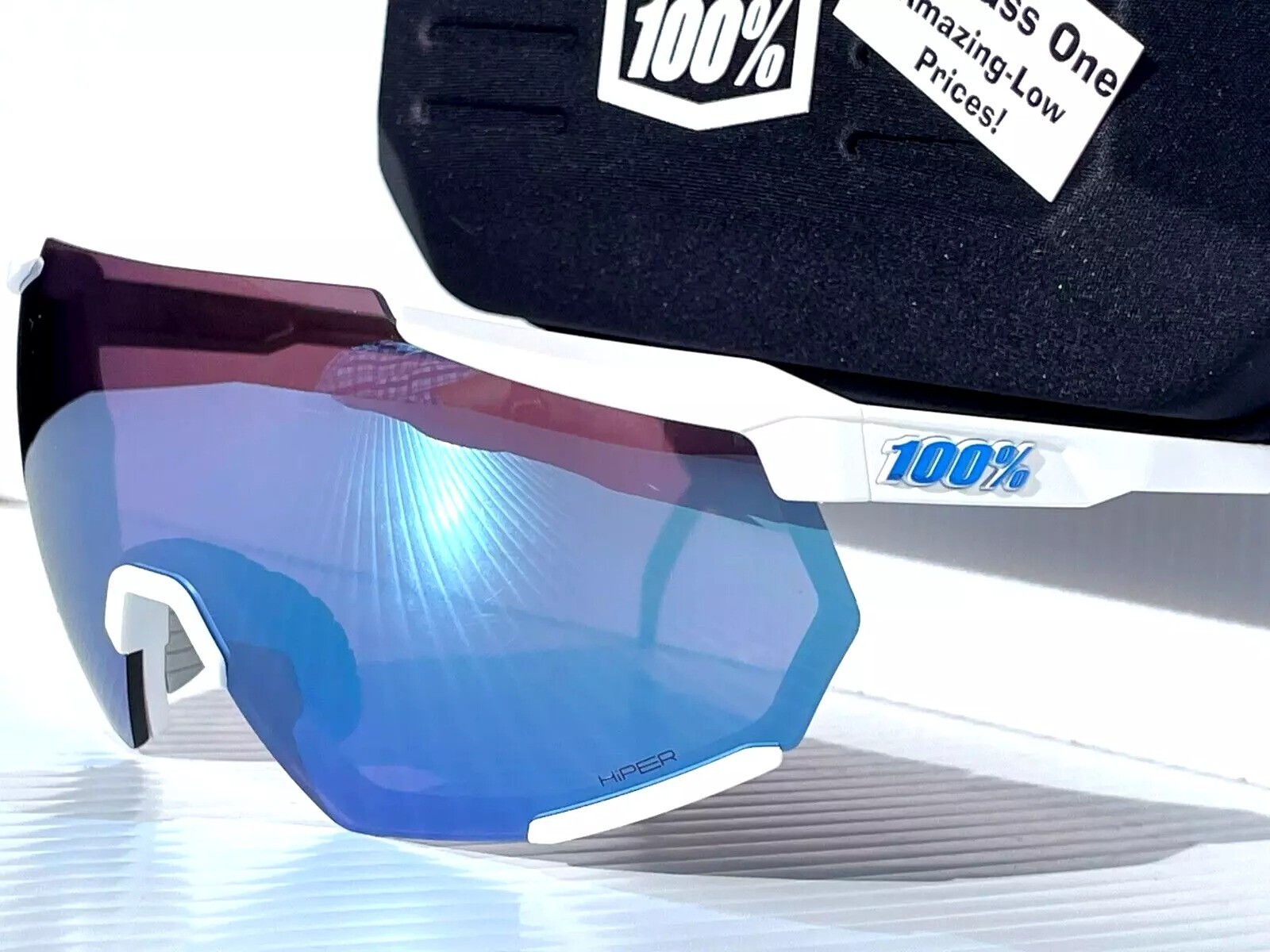 как выглядит 100 Percent RACETRAP 3.0 Matte White HiPER Blue Mirror Sunglass 60004-00001 фото