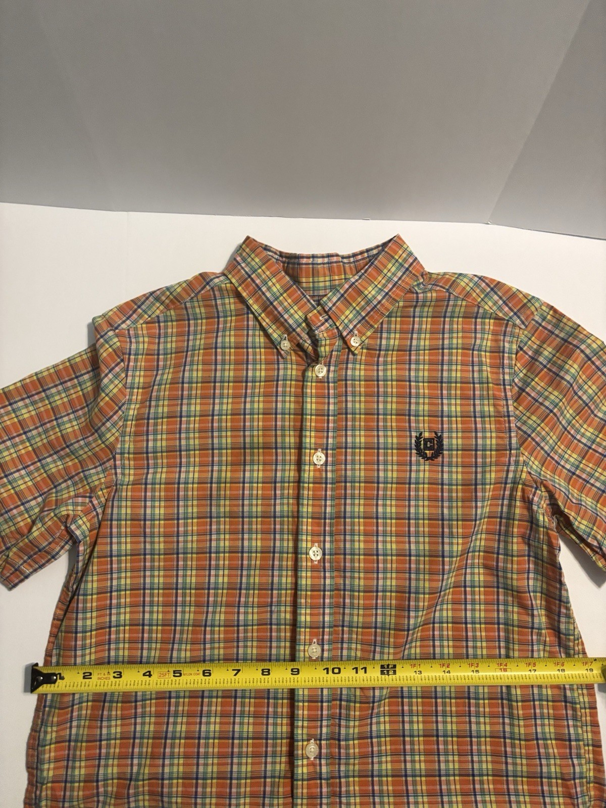 как выглядит Ralph Lauren Chaps Boys Shirt Short Sleeve Button-Down Multicolor Orange Plaid фото
