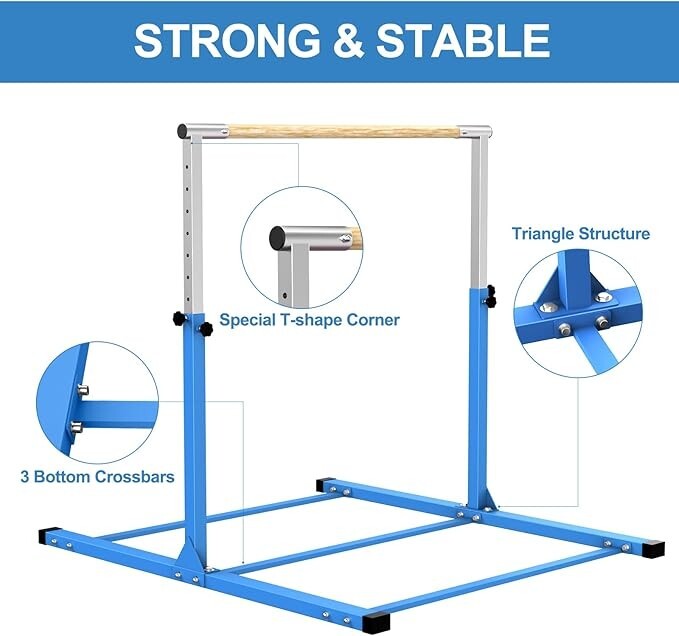 Included Components: gymnatics bar base, wood bar, screw knobs