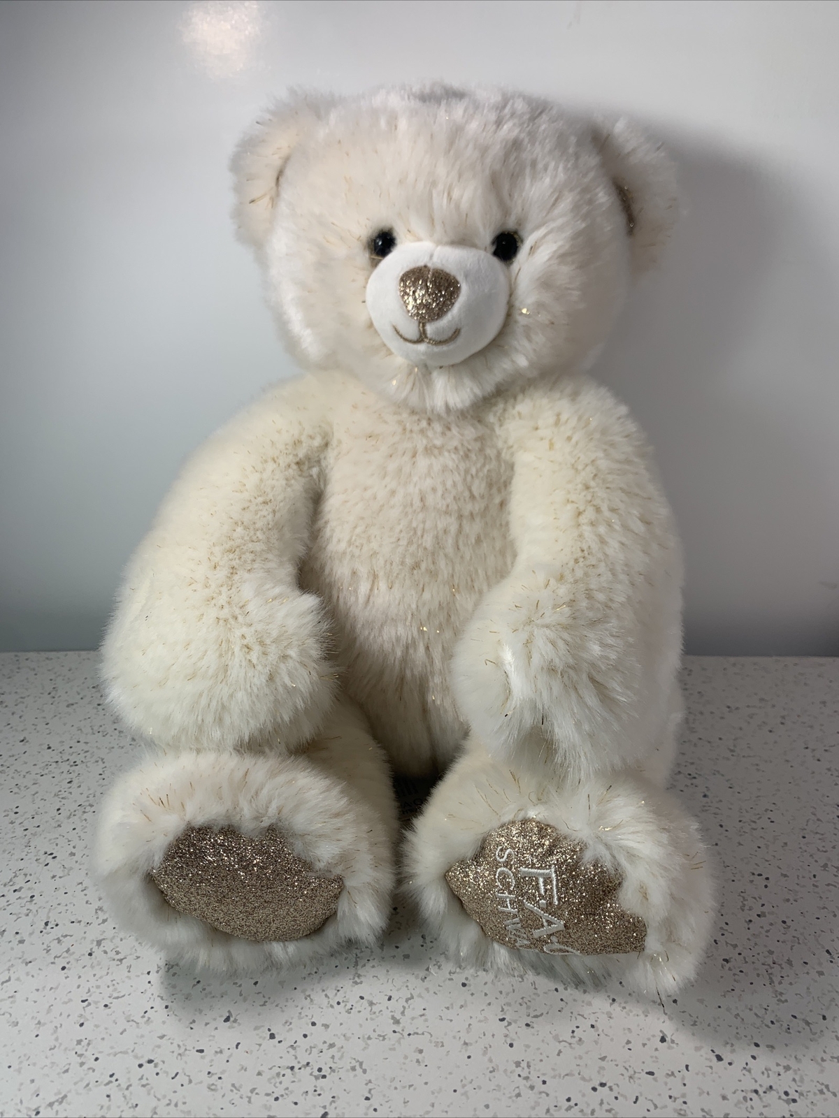 как выглядит FAO Schwarz Cream Color Gold Metallic Sparkle Bear 10 Inch Sitting Plush Bear фото
