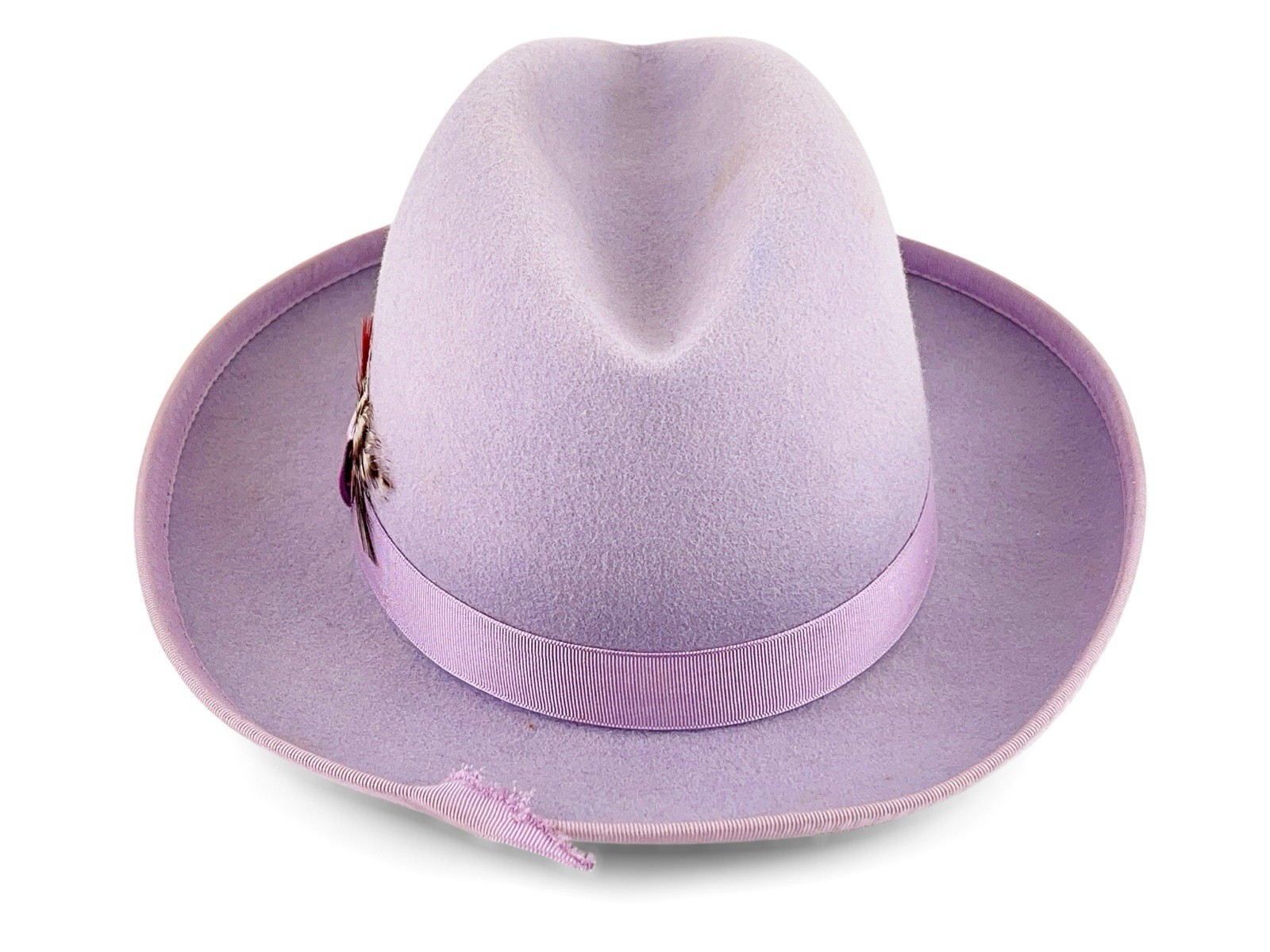 как выглядит Vintage Purple Wool Bowler Hat Derby Capas Design w/ Feather Sz M фото