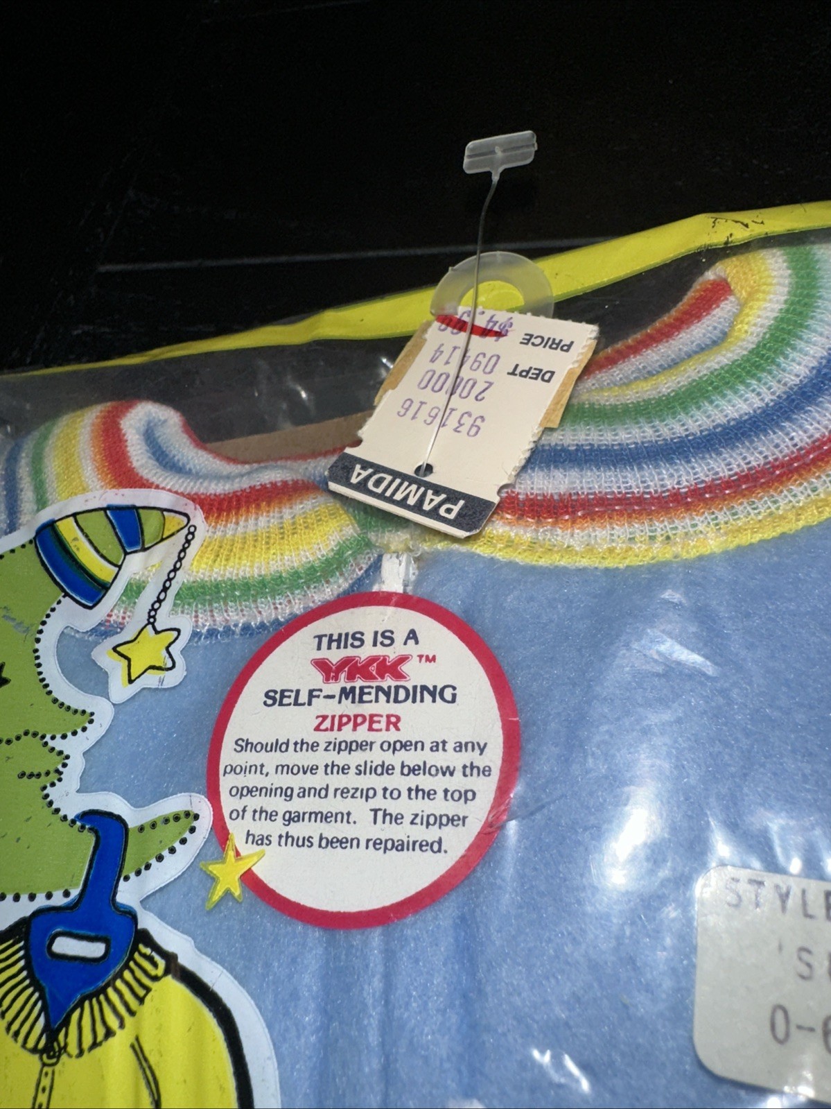 VTG Rainbow Trim Blue Footed Pajamas Blanket Sleeper Baby Size 0-6 Months NEW