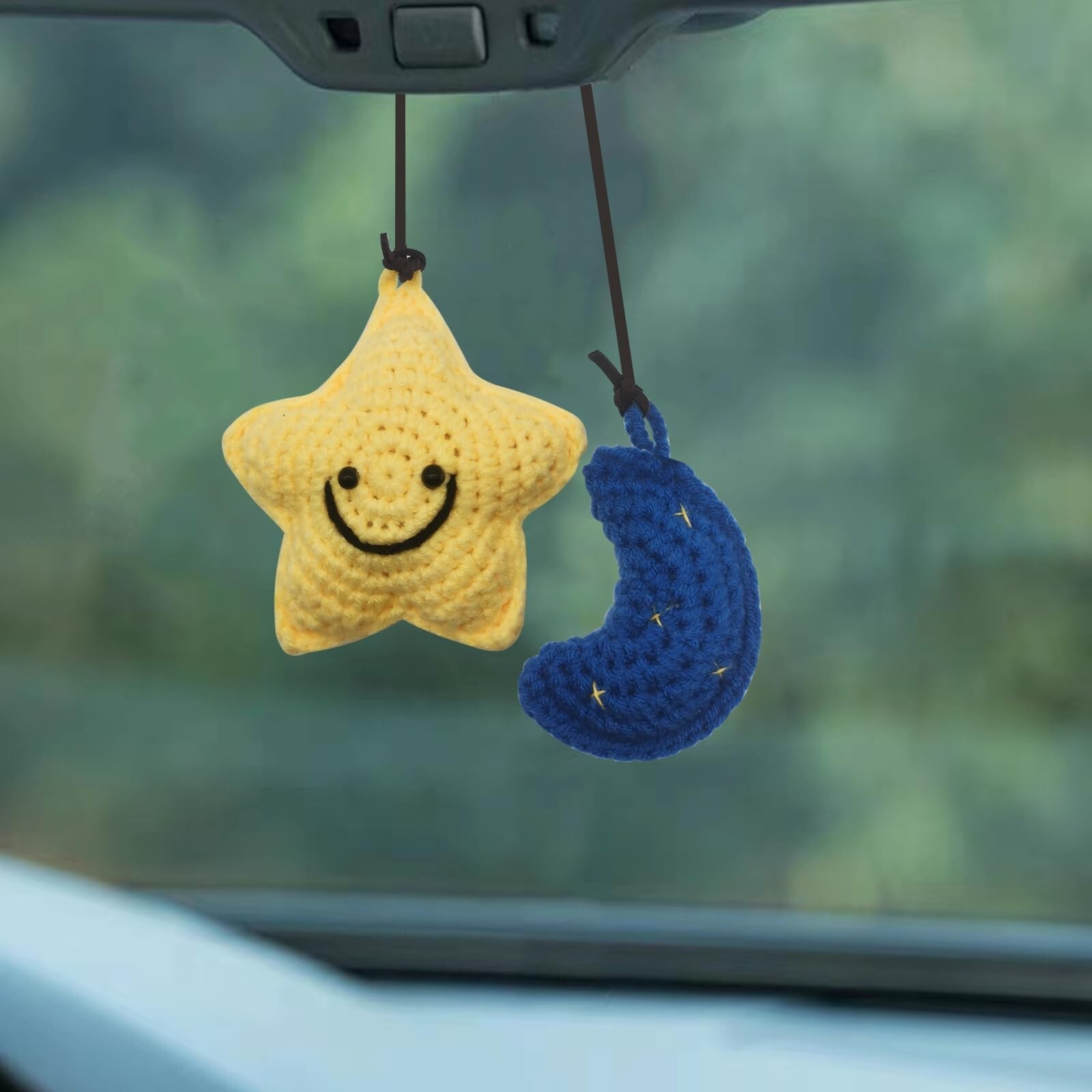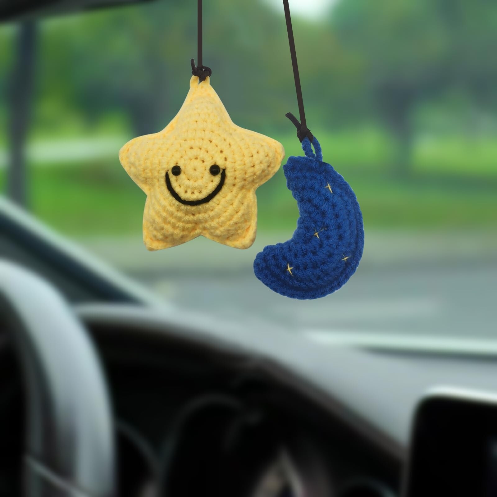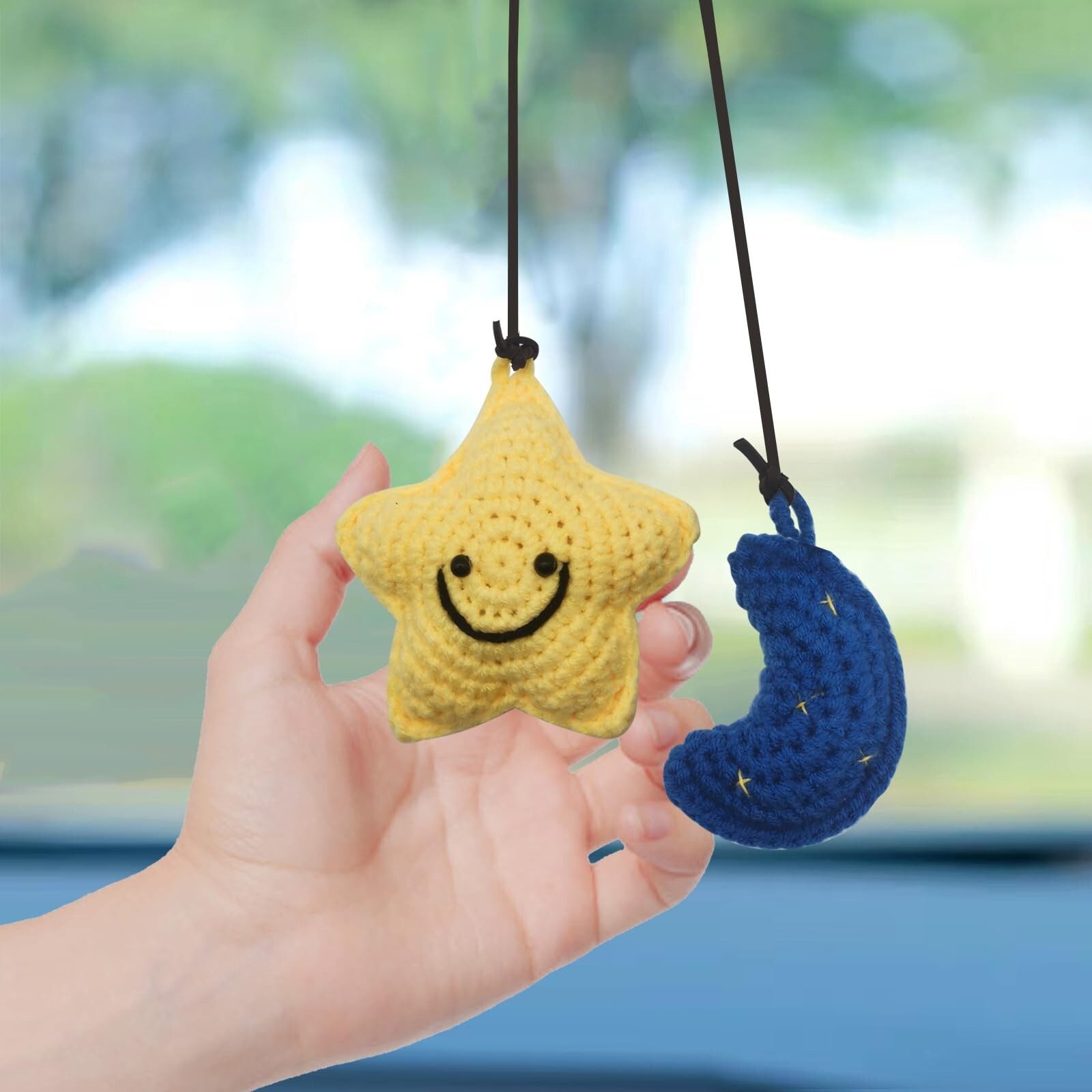 Car Rearview Mirror Hanging Ornament, Crochet Flower Basket Plant Accessories...