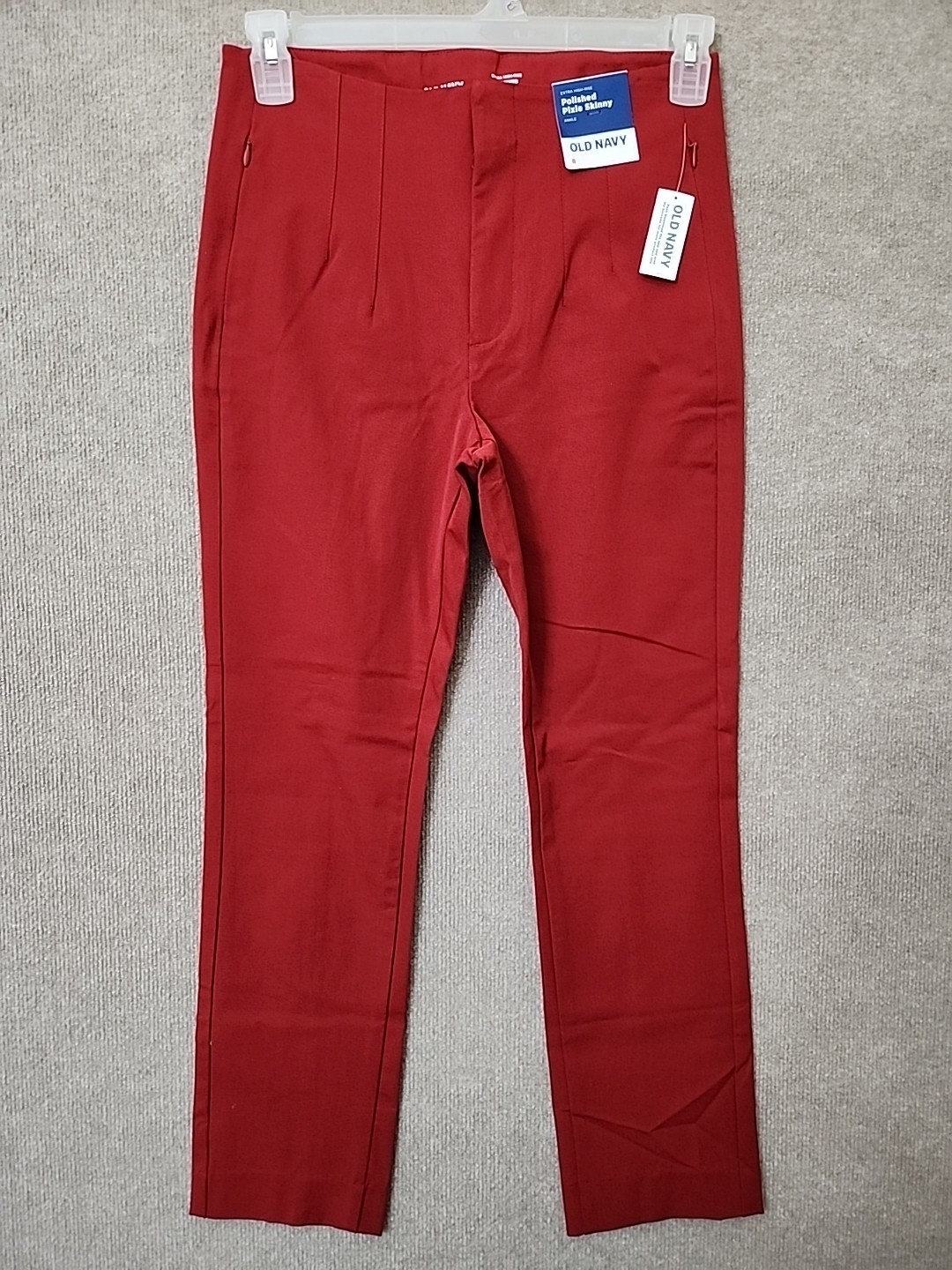 как выглядит Old Navy Polished Pixie Skinny Pants Women 8 Red Cordovan Zip Pockets NEW фото