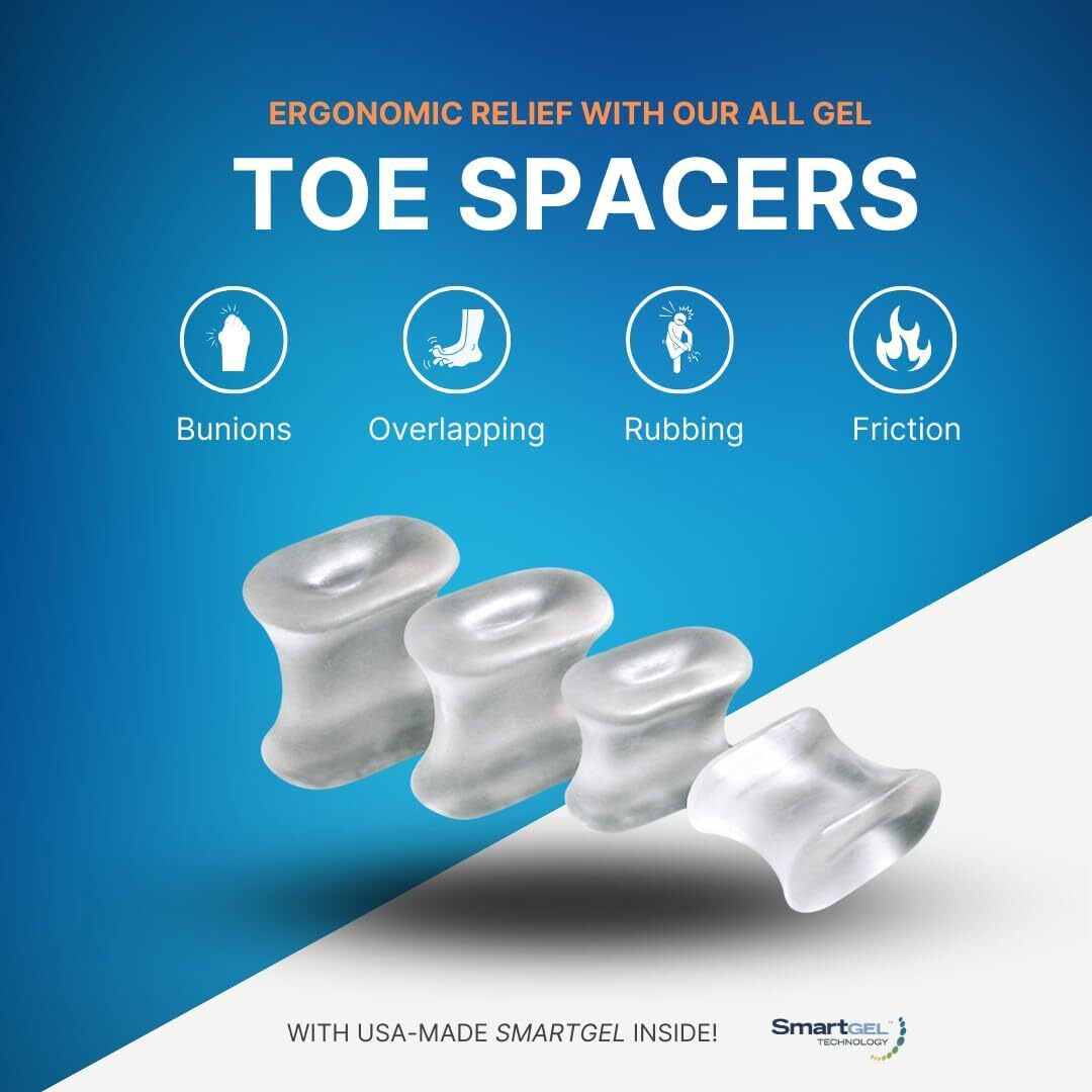 NatraCure Gel Toe Spacers - Helps with Bunions, Corns, Blisters, Rubbing