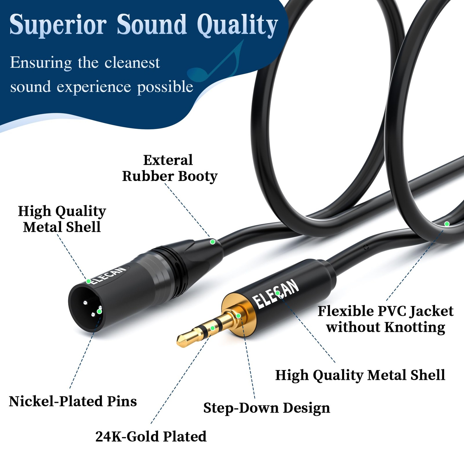 3.5mm 1/8 Inch TRS to XLR Cable 10 Ft Male to Male-Balanced Shielded 3 Pin ...