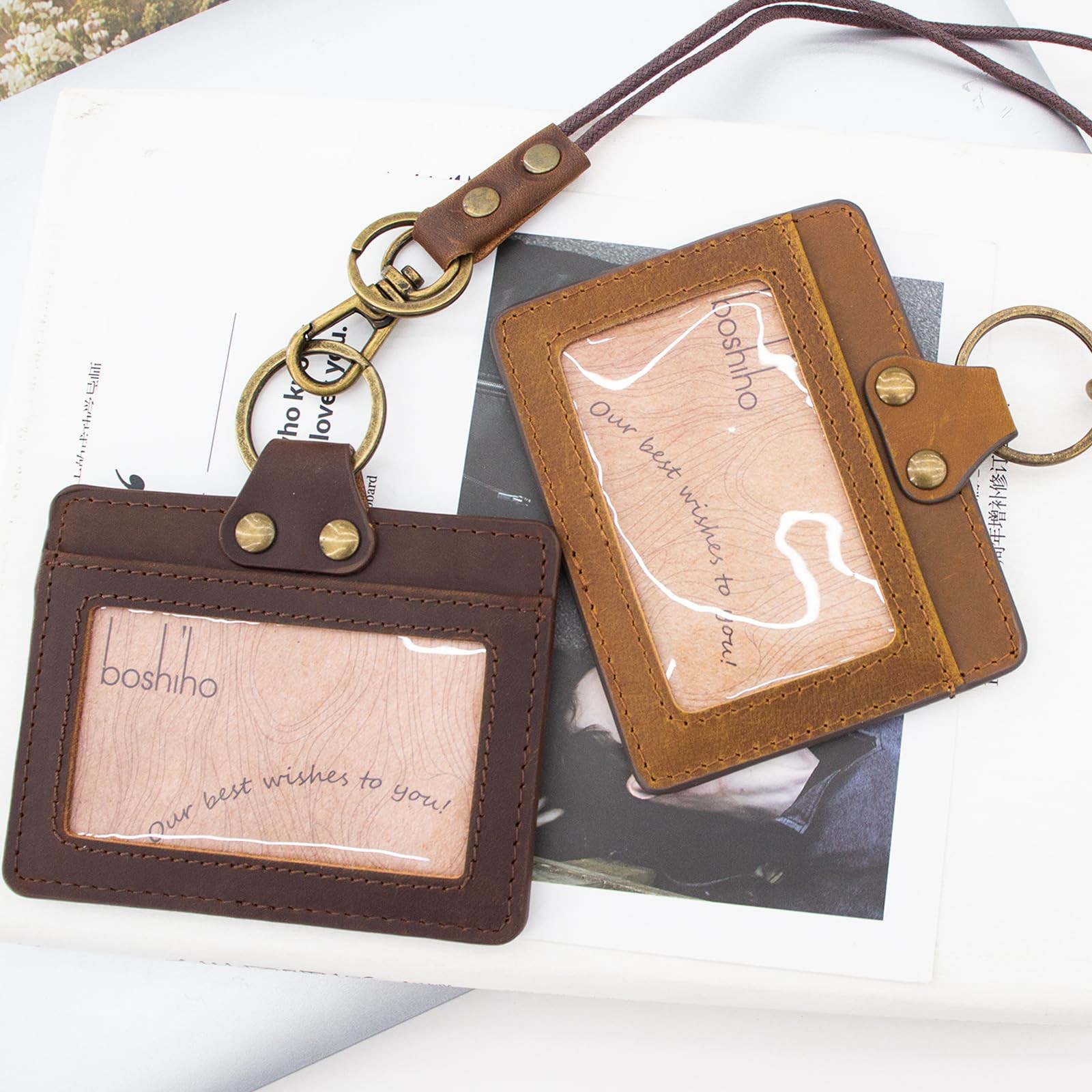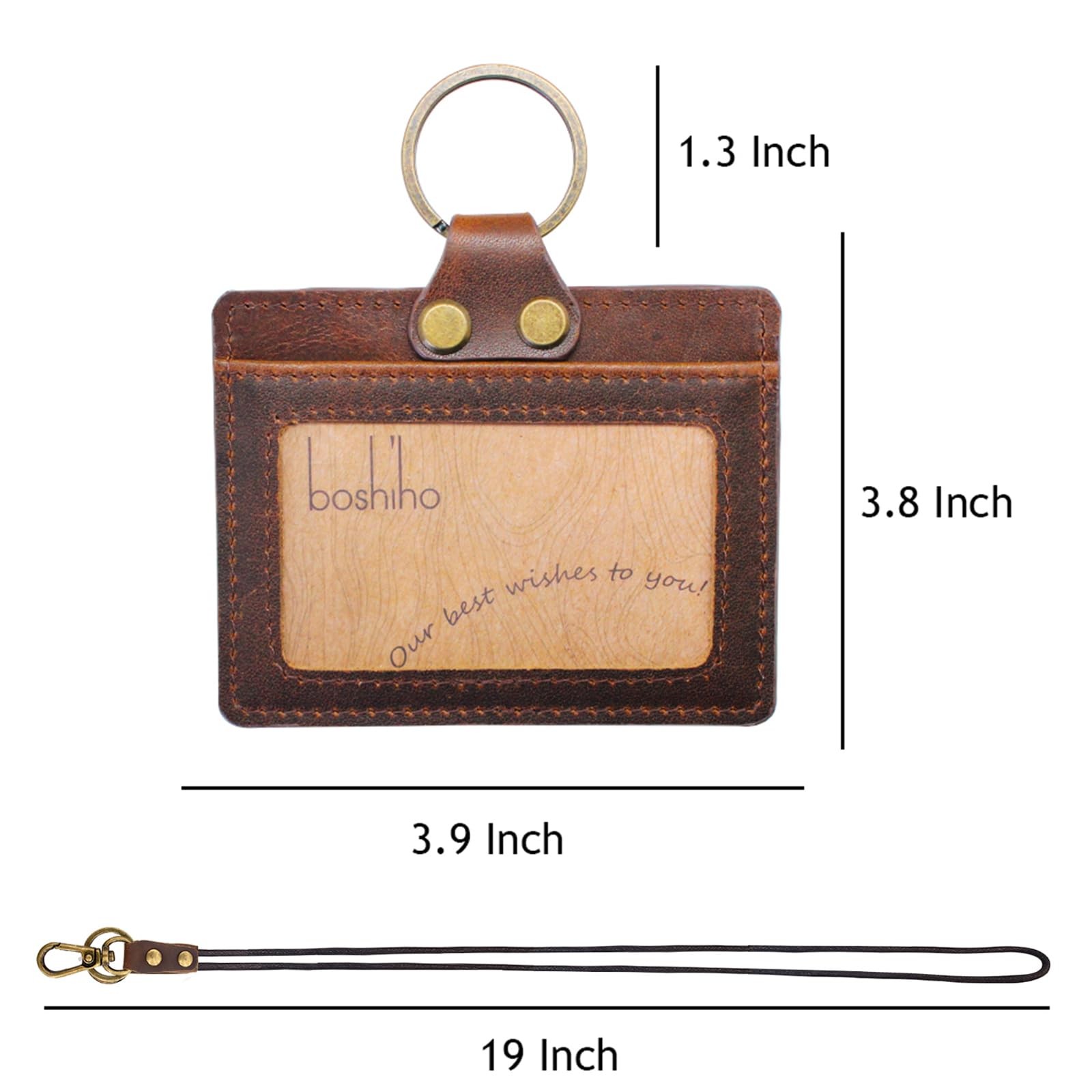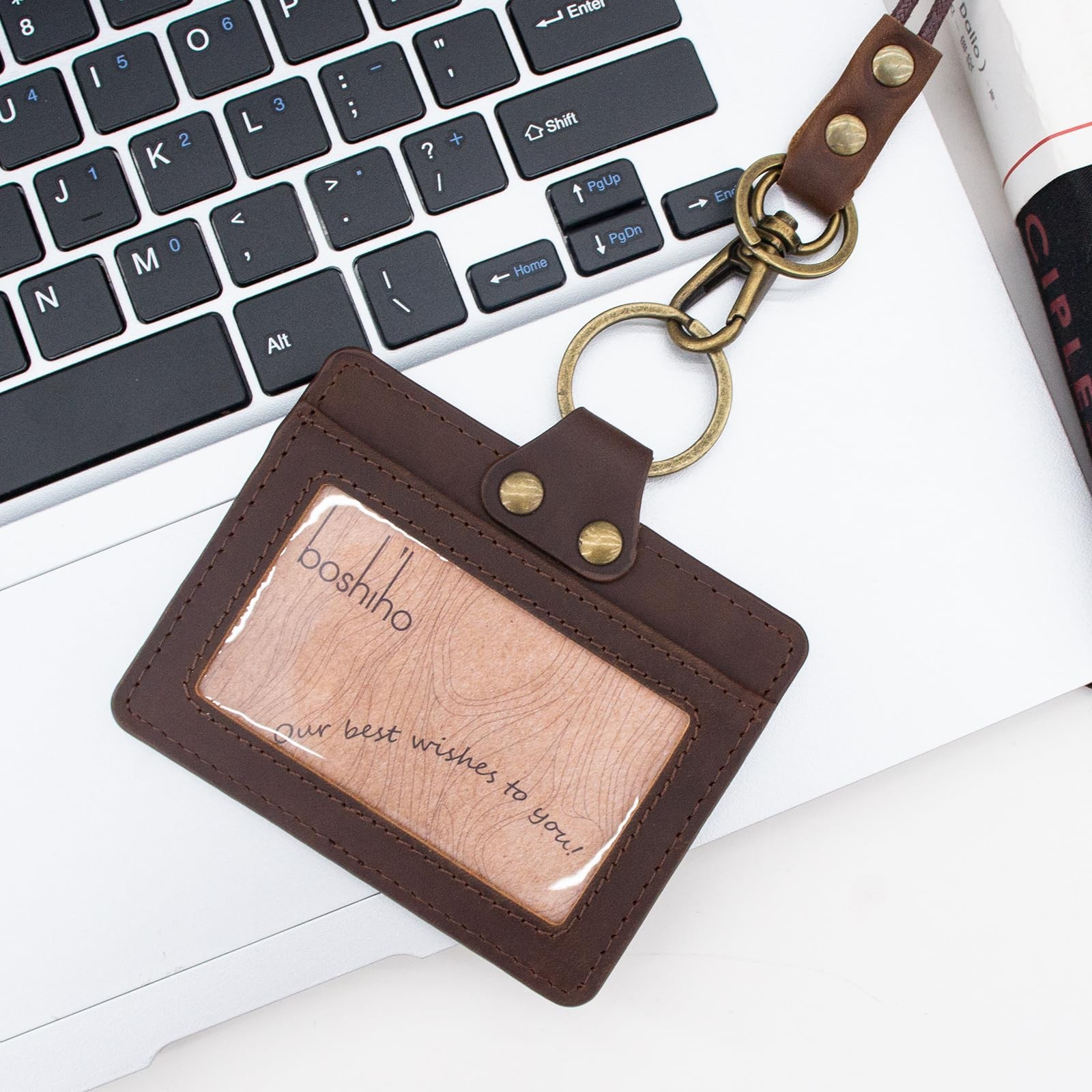 Badge Holder: Cowhide Leather ID Badge Card Holder with 19 Neck Lanyard, Hor...